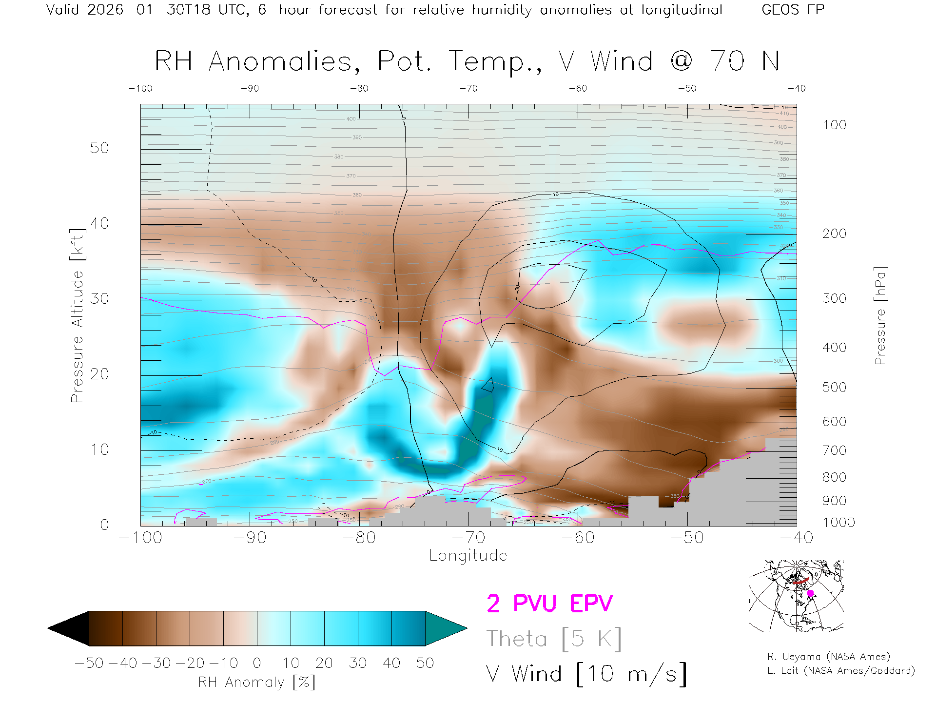 GEOS Forecast Rel. Hum. X-Section (70 N)