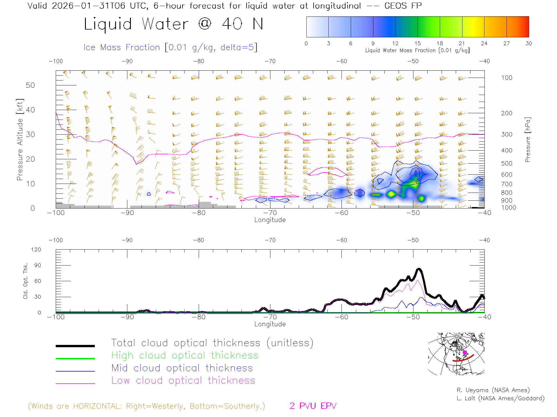 GEOS Forecast Cloud Water Content X-Section (40 N)