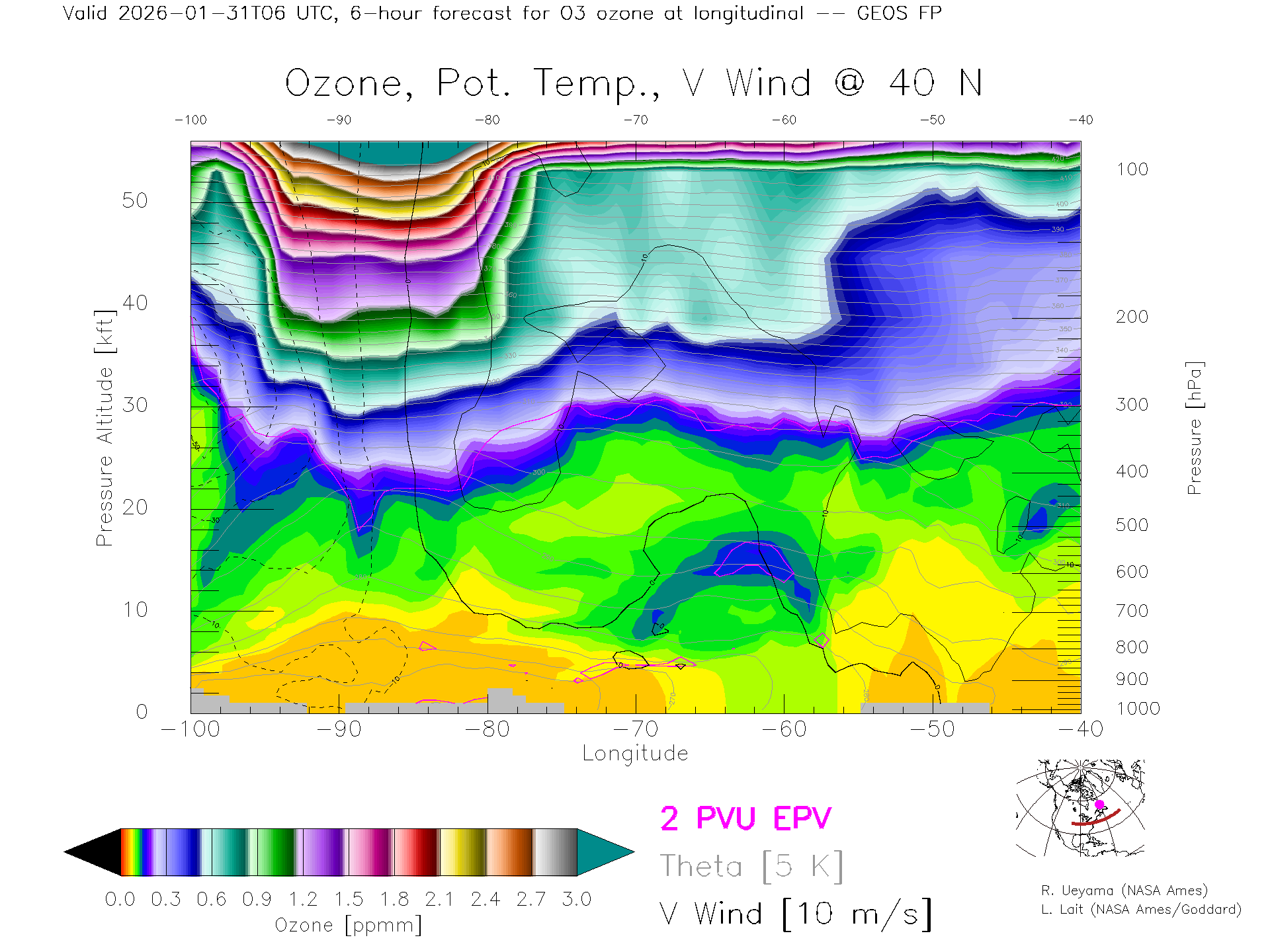 GEOS Forecast Ozone X-Section (40 N)