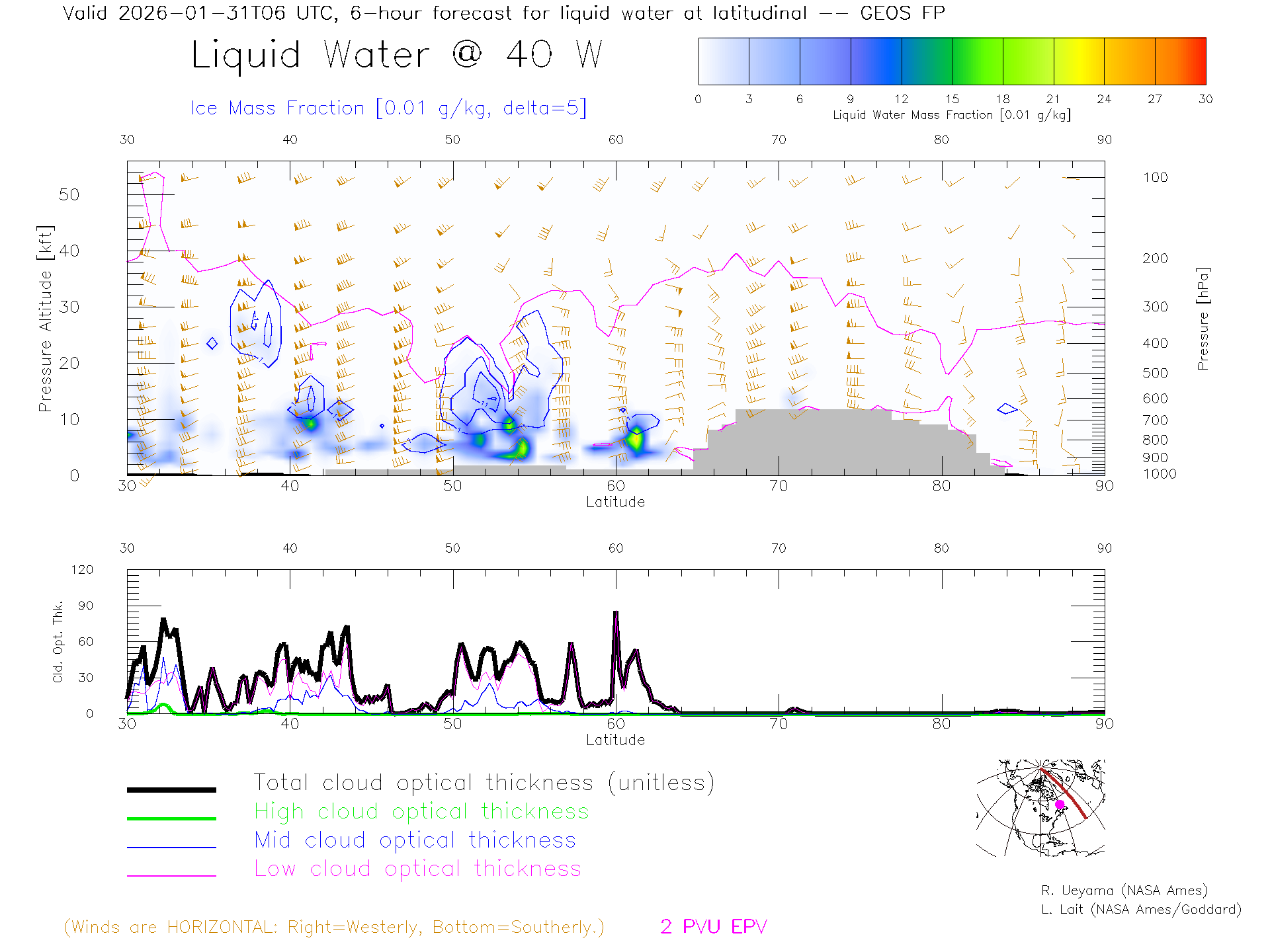 GEOS Forecast Cloud Water Content X-Section (40 W)