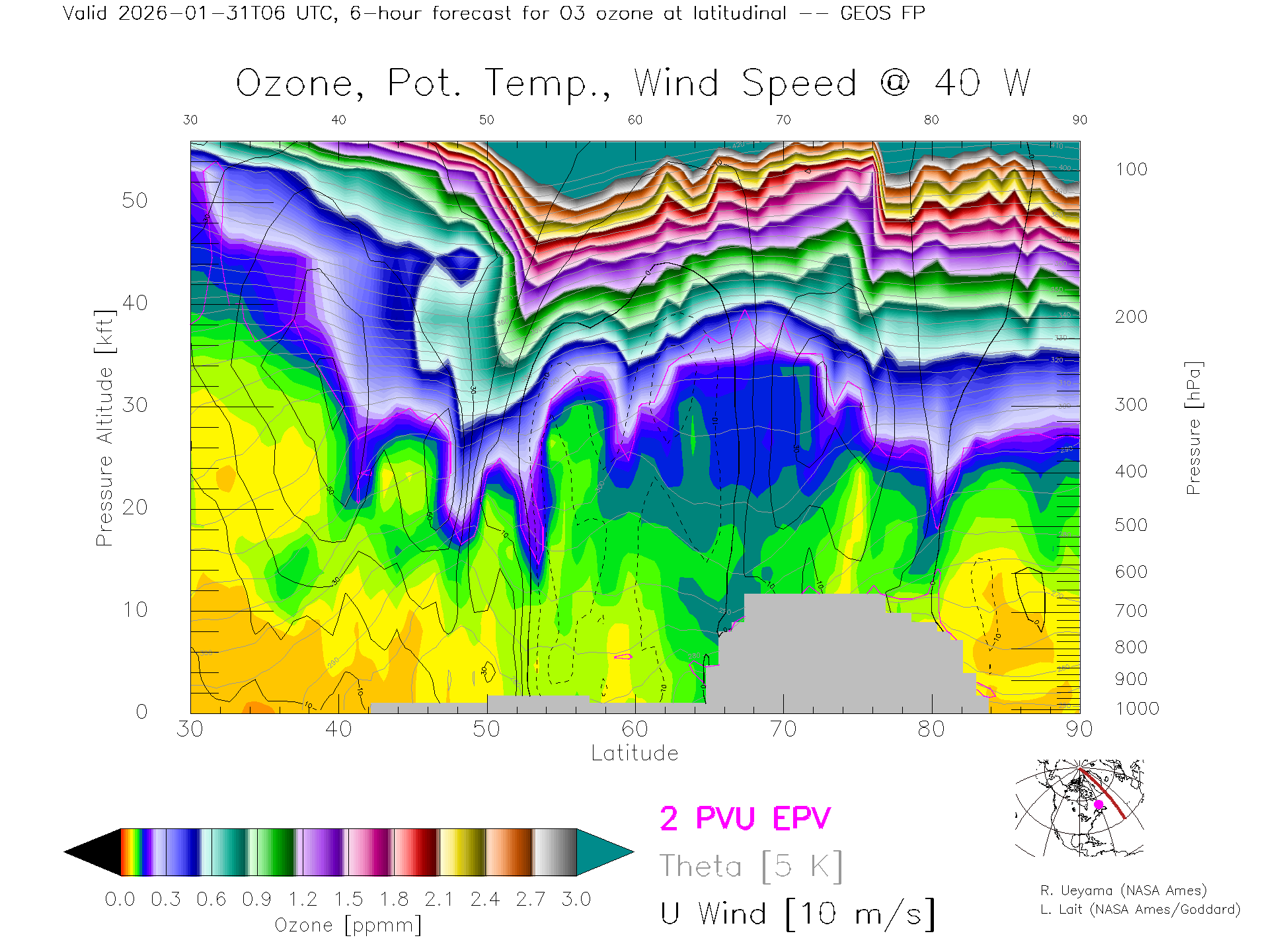GEOS Forecast Ozone X-Section (40 W)