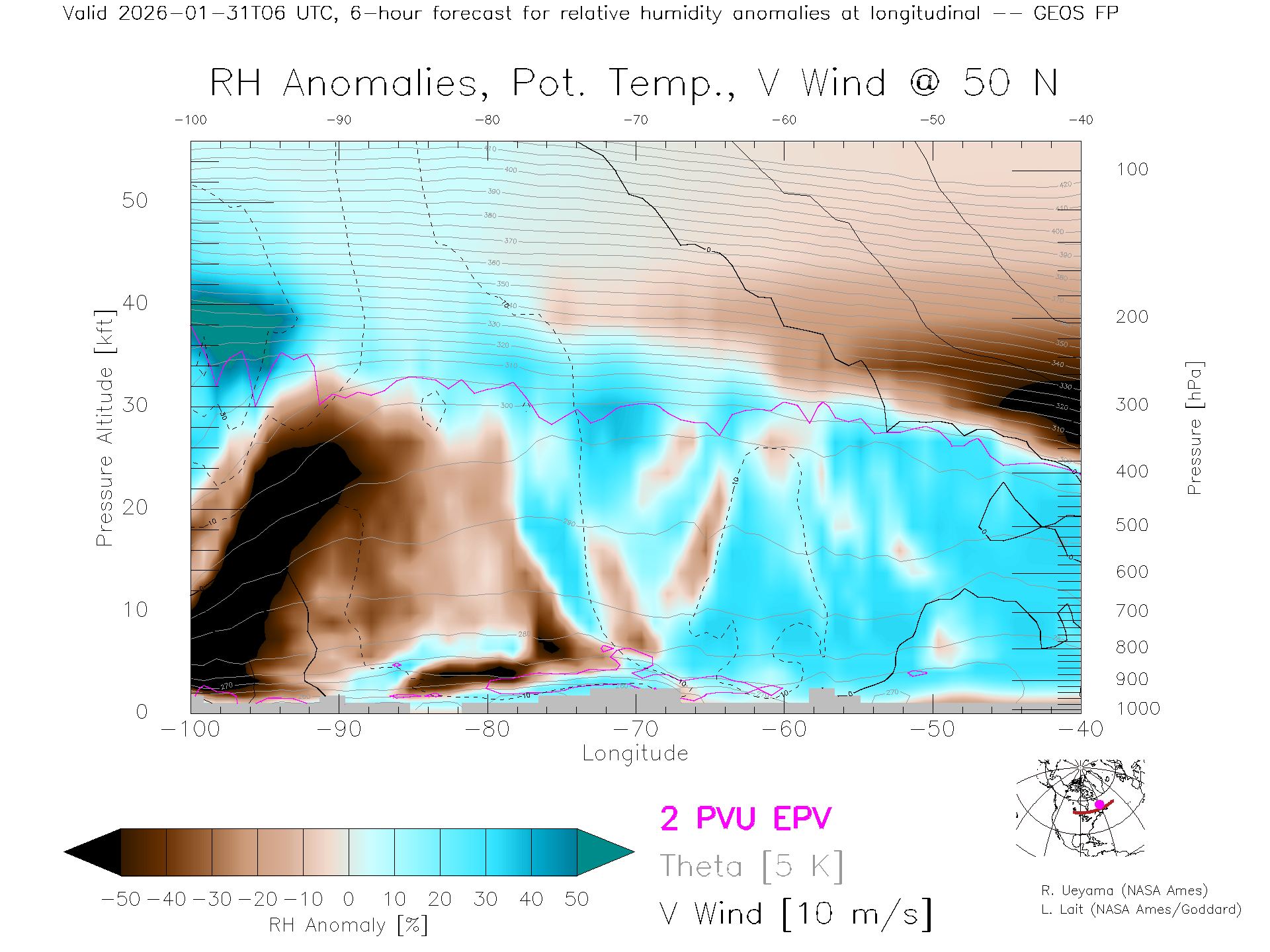 GEOS Forecast Rel. Hum. X-Section (50 N)