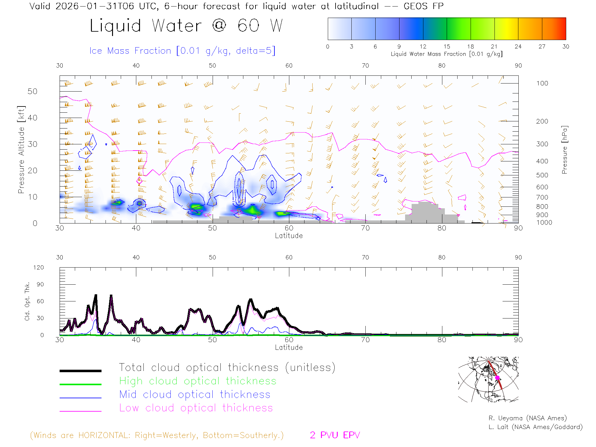 GEOS Forecast Cloud Water Content X-Section (60 W)
