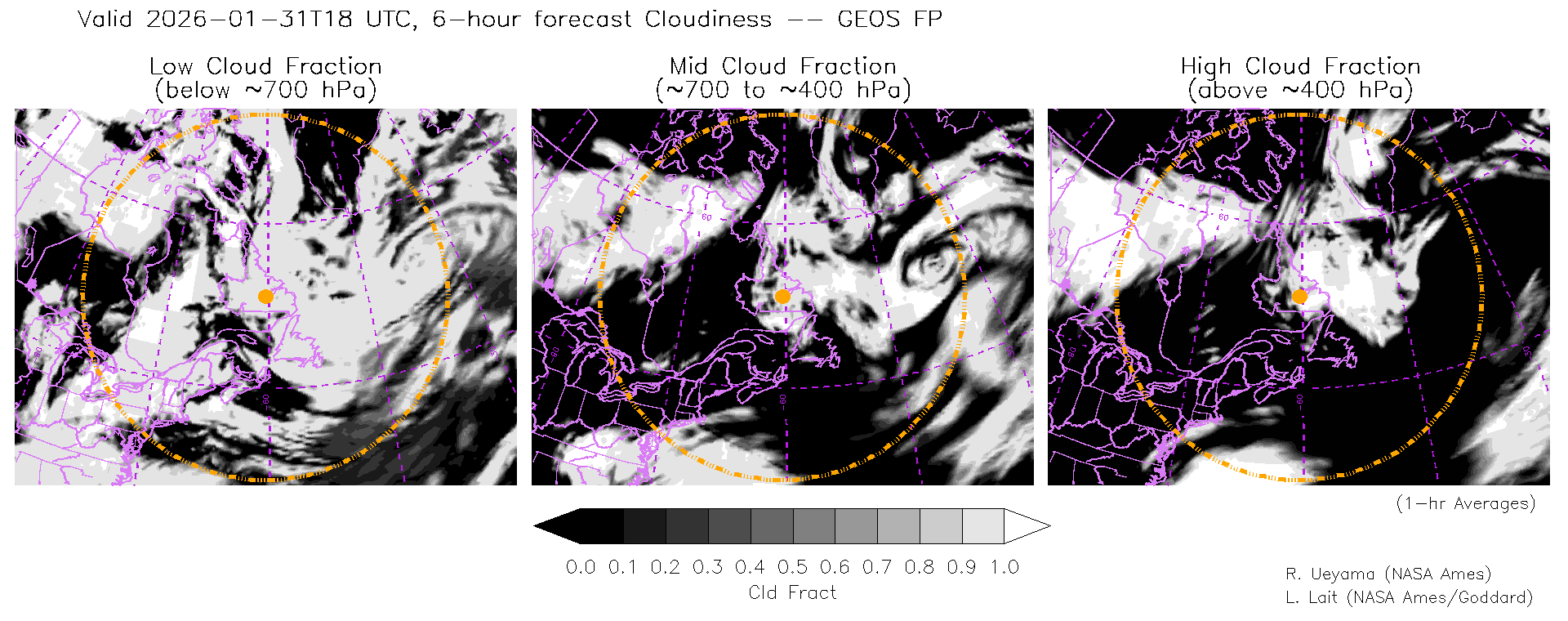 GEOS Forecast Cloud Fraction (High, Mid, Low)