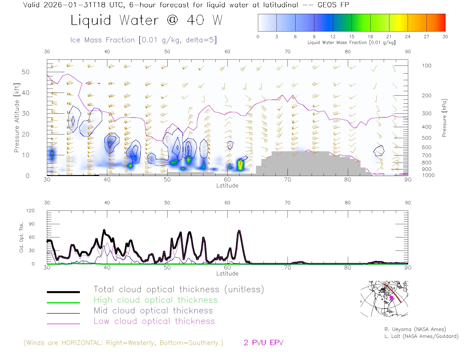 GEOS Forecast Cloud Water Content X-Section (40 W)