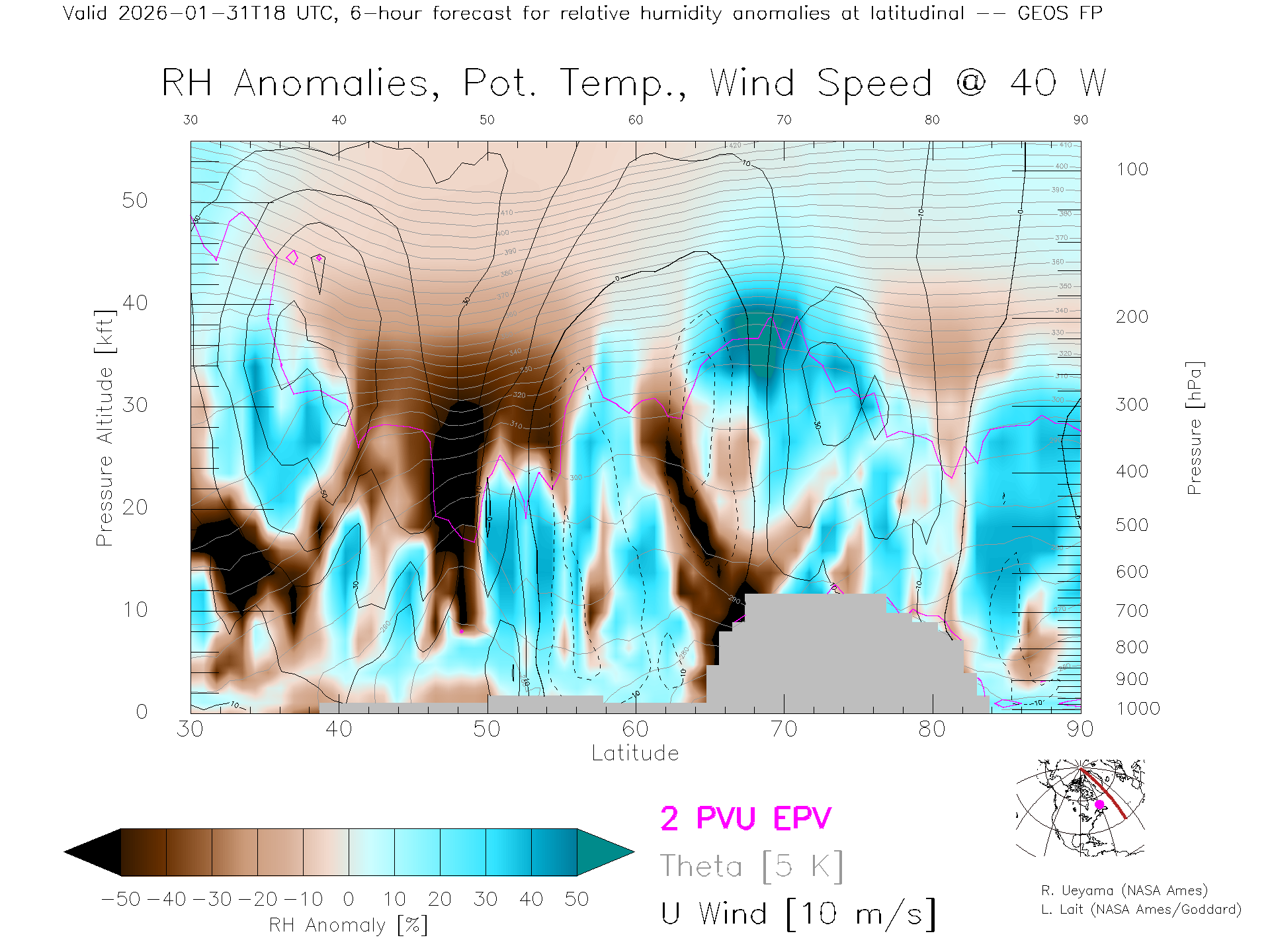 GEOS Forecast Rel. Hum. X-Section (40 W)