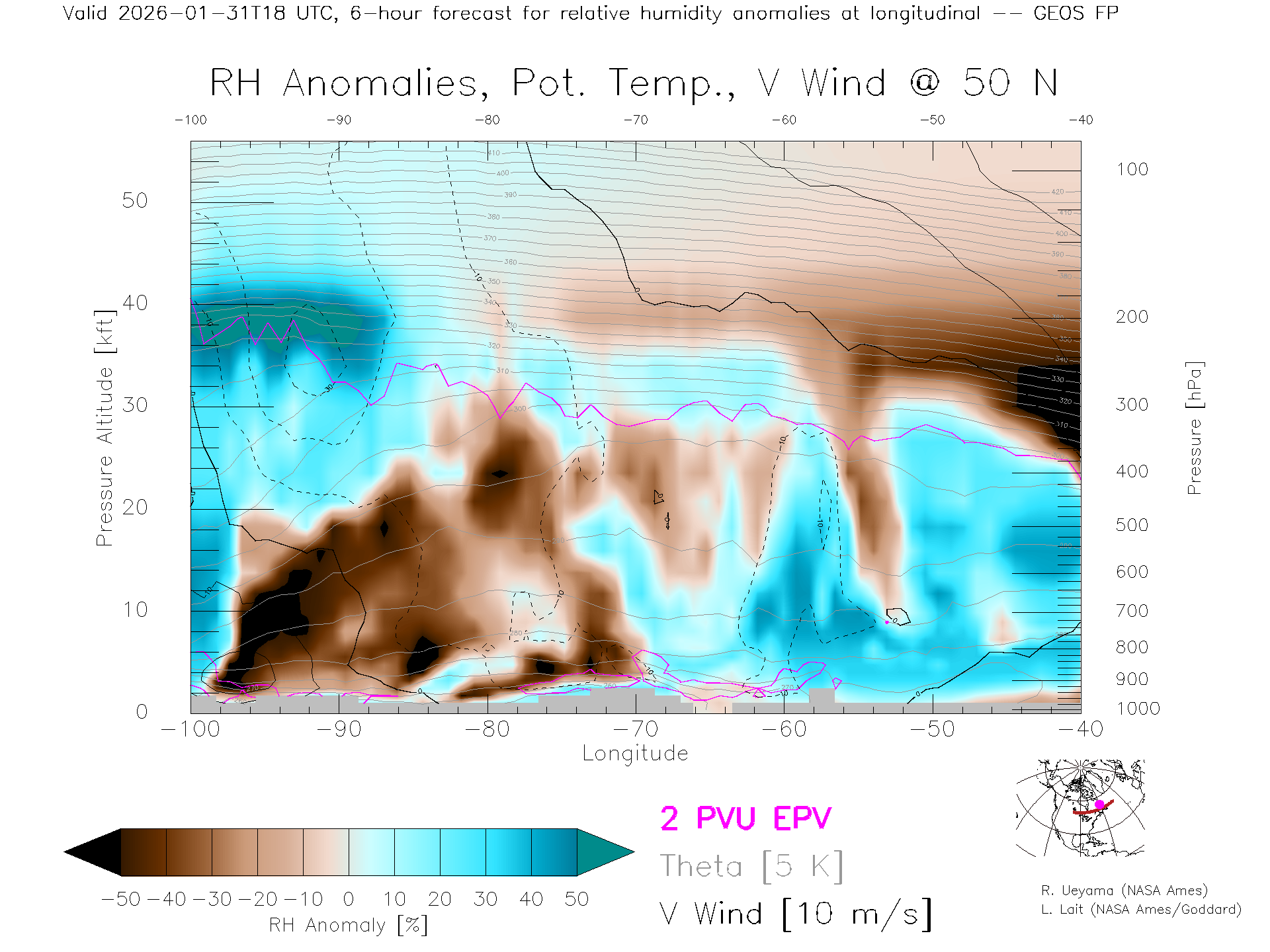 GEOS Forecast Rel. Hum. X-Section (50 N)