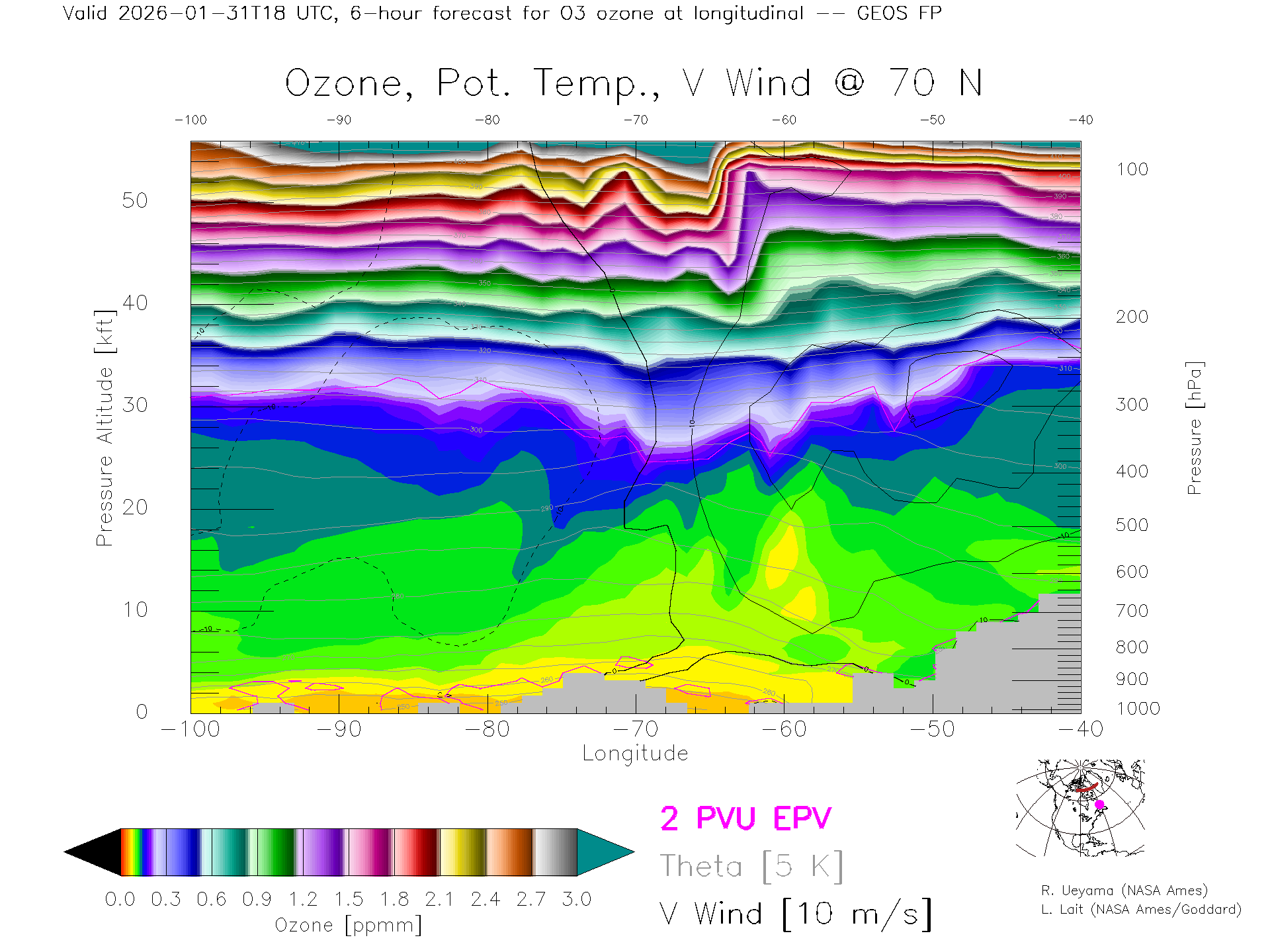 GEOS Forecast Ozone X-Section (70 N)