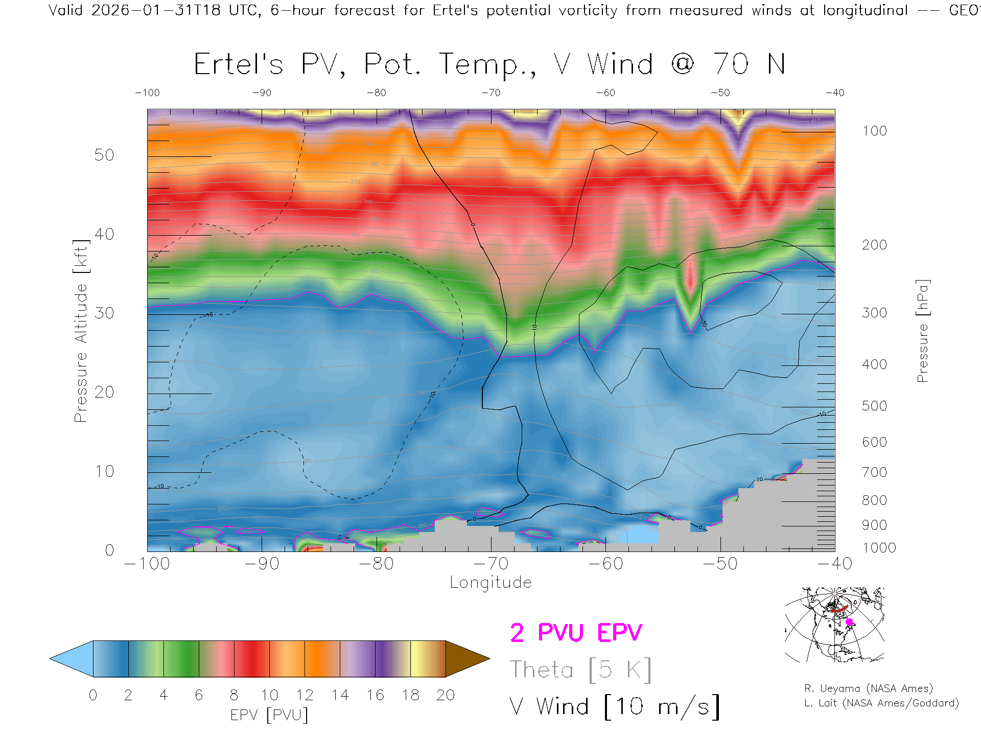 GEOS Forecast PV X-Section (70 N)