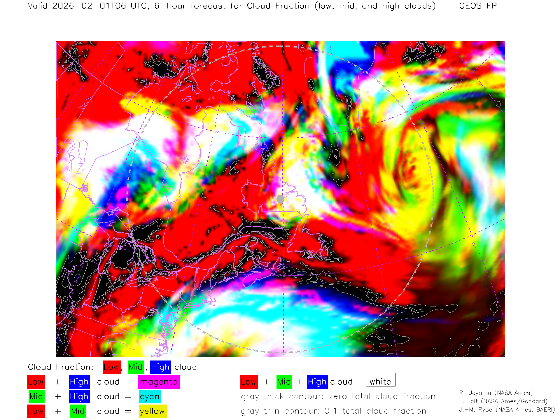 GEOS Forecast Low-, Mid- and High-level Cloud Fraction