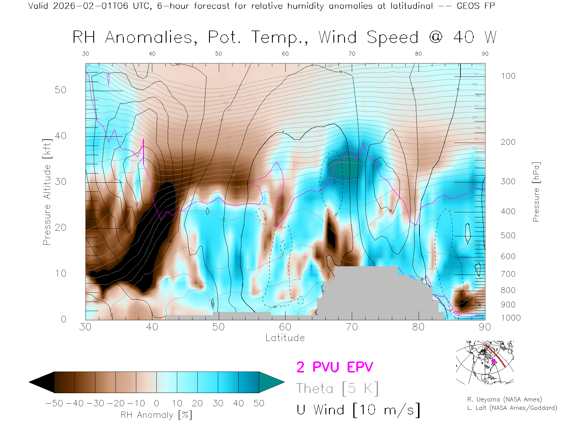 GEOS Forecast Rel. Hum. X-Section (40 W)