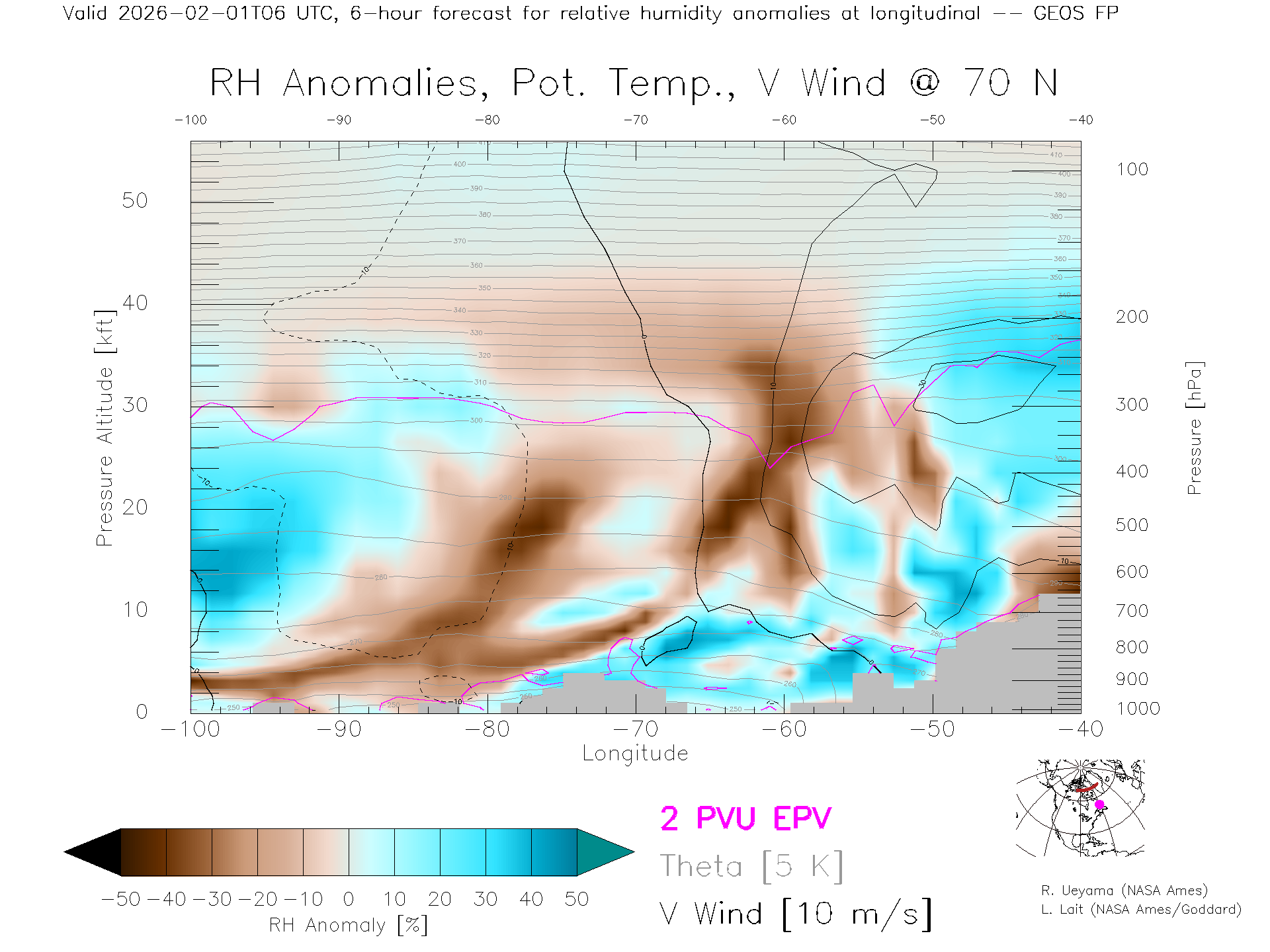 GEOS Forecast Rel. Hum. X-Section (70 N)