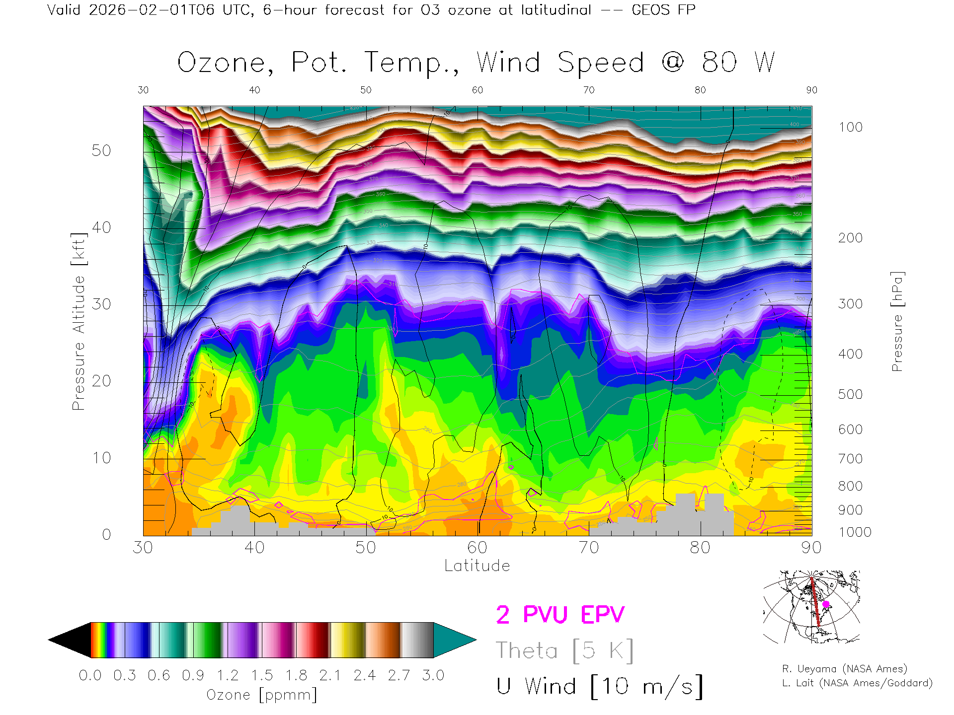 GEOS Forecast Ozone X-Section (80 W)
