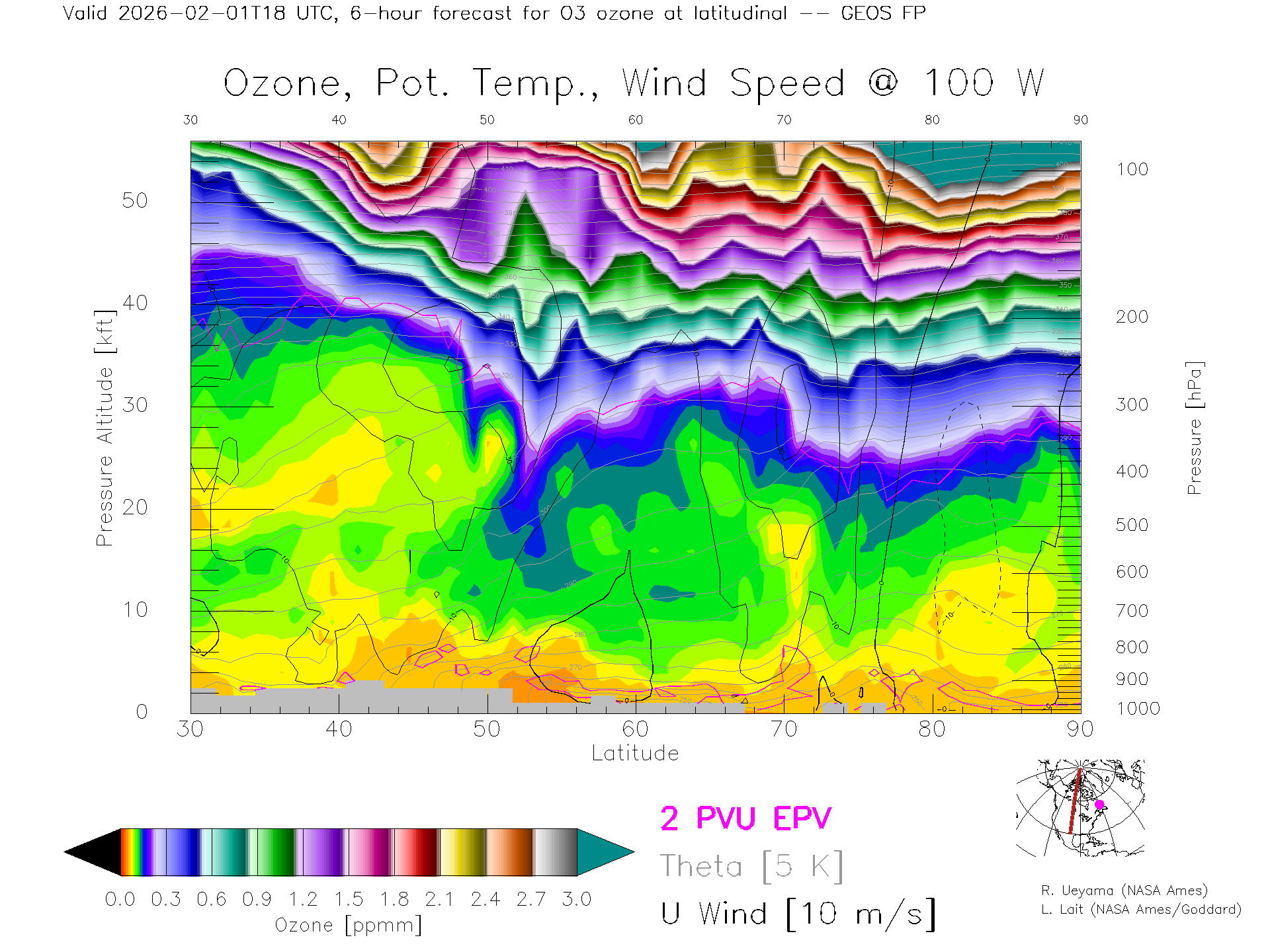 GEOS Forecast Ozone X-Section (100 W)