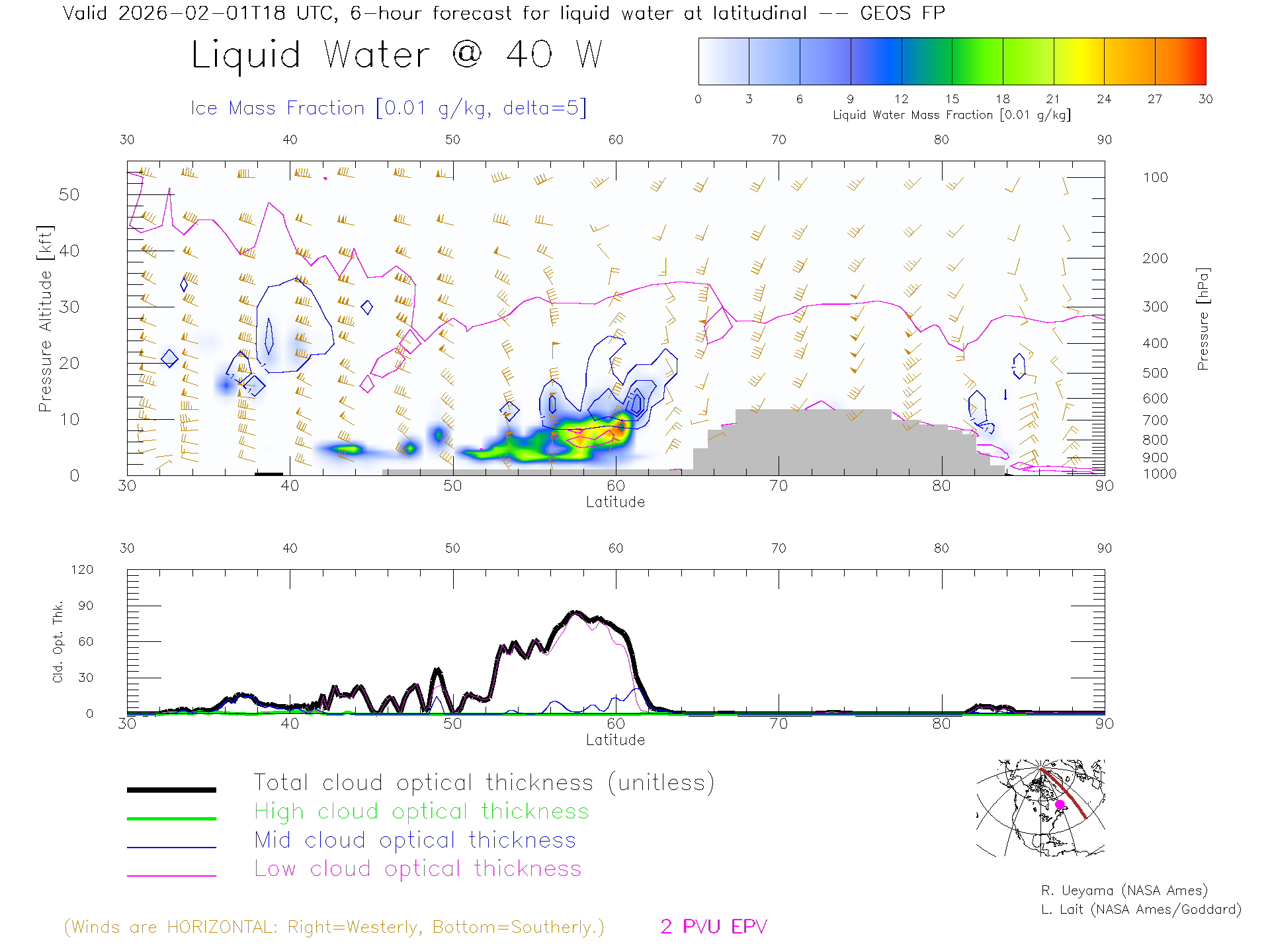 GEOS Forecast Cloud Water Content X-Section (40 W)