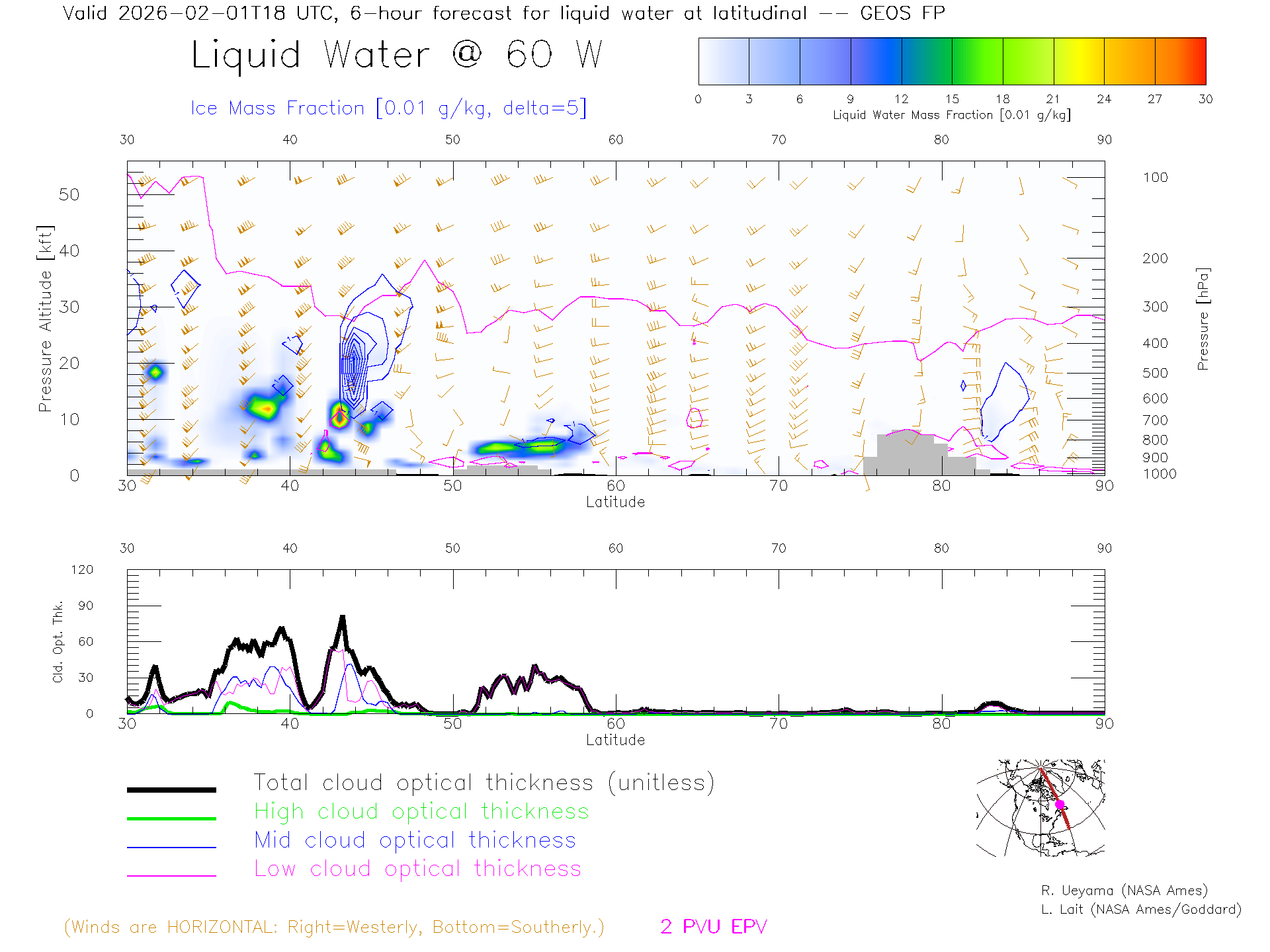 GEOS Forecast Cloud Water Content X-Section (60 W)