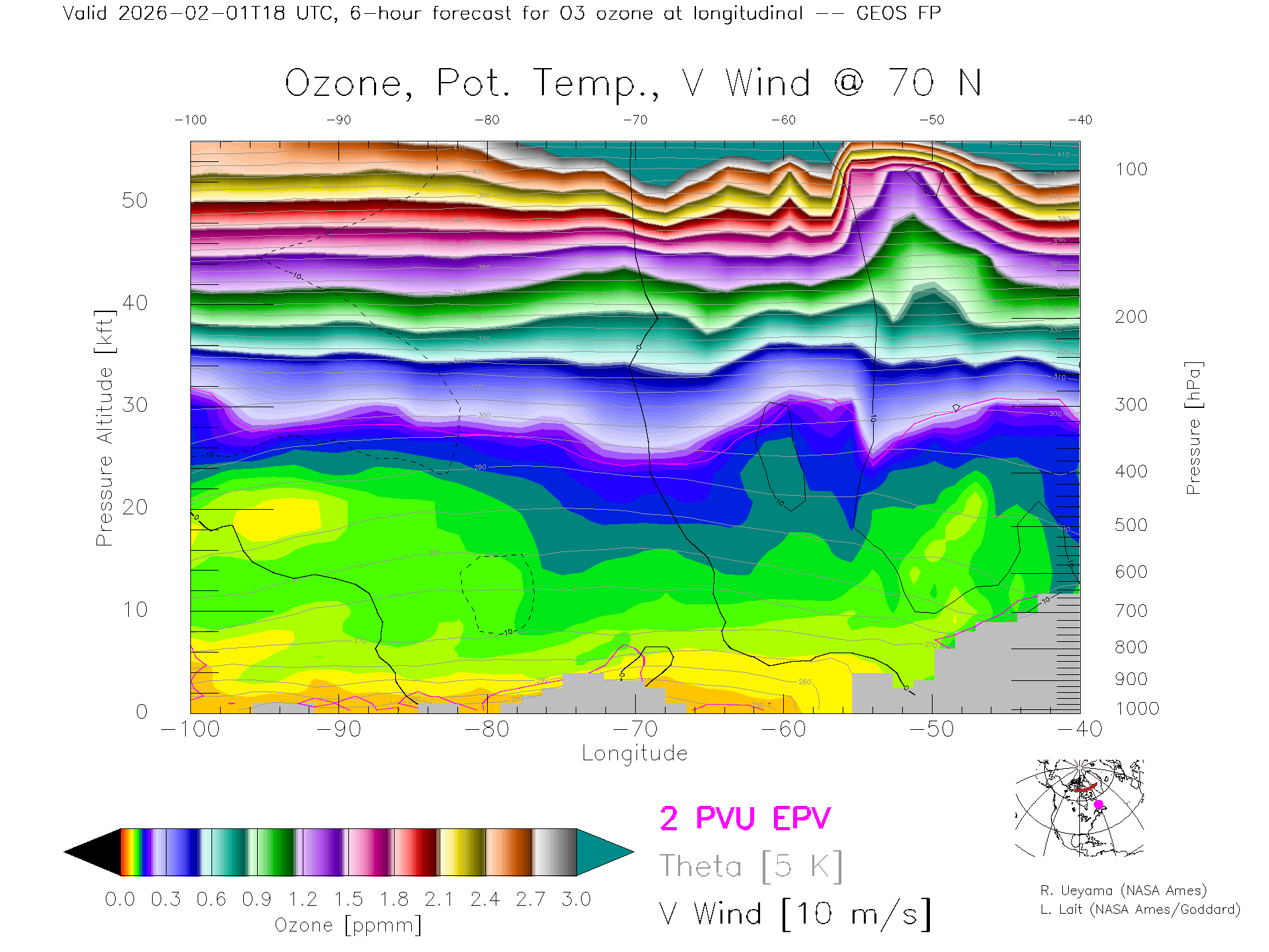 GEOS Forecast Ozone X-Section (70 N)