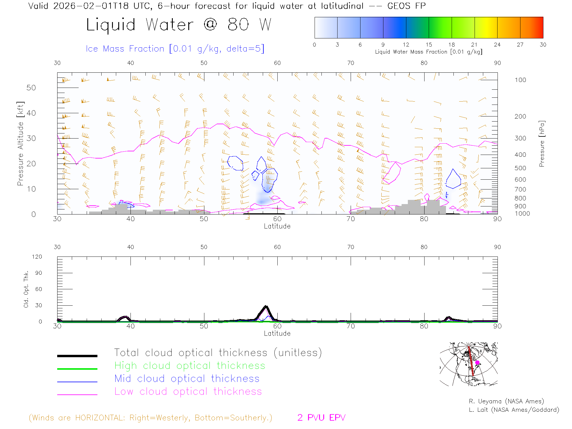 GEOS Forecast Cloud Water Content X-Section (80 W)