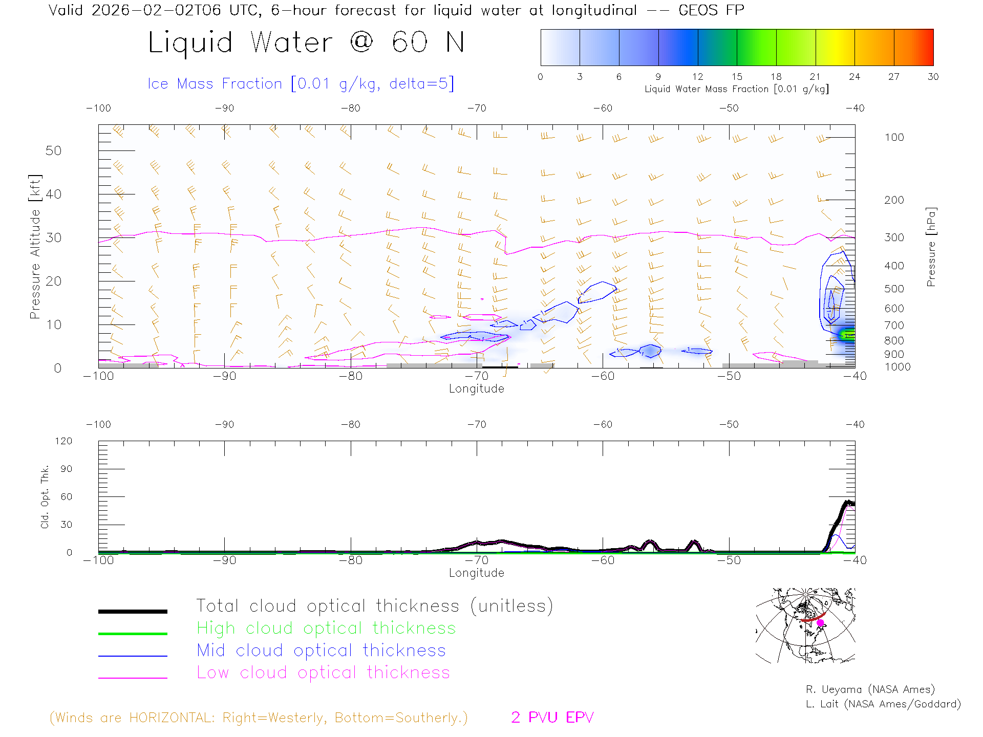 GEOS Forecast Cloud Water Content X-Section (60 N)