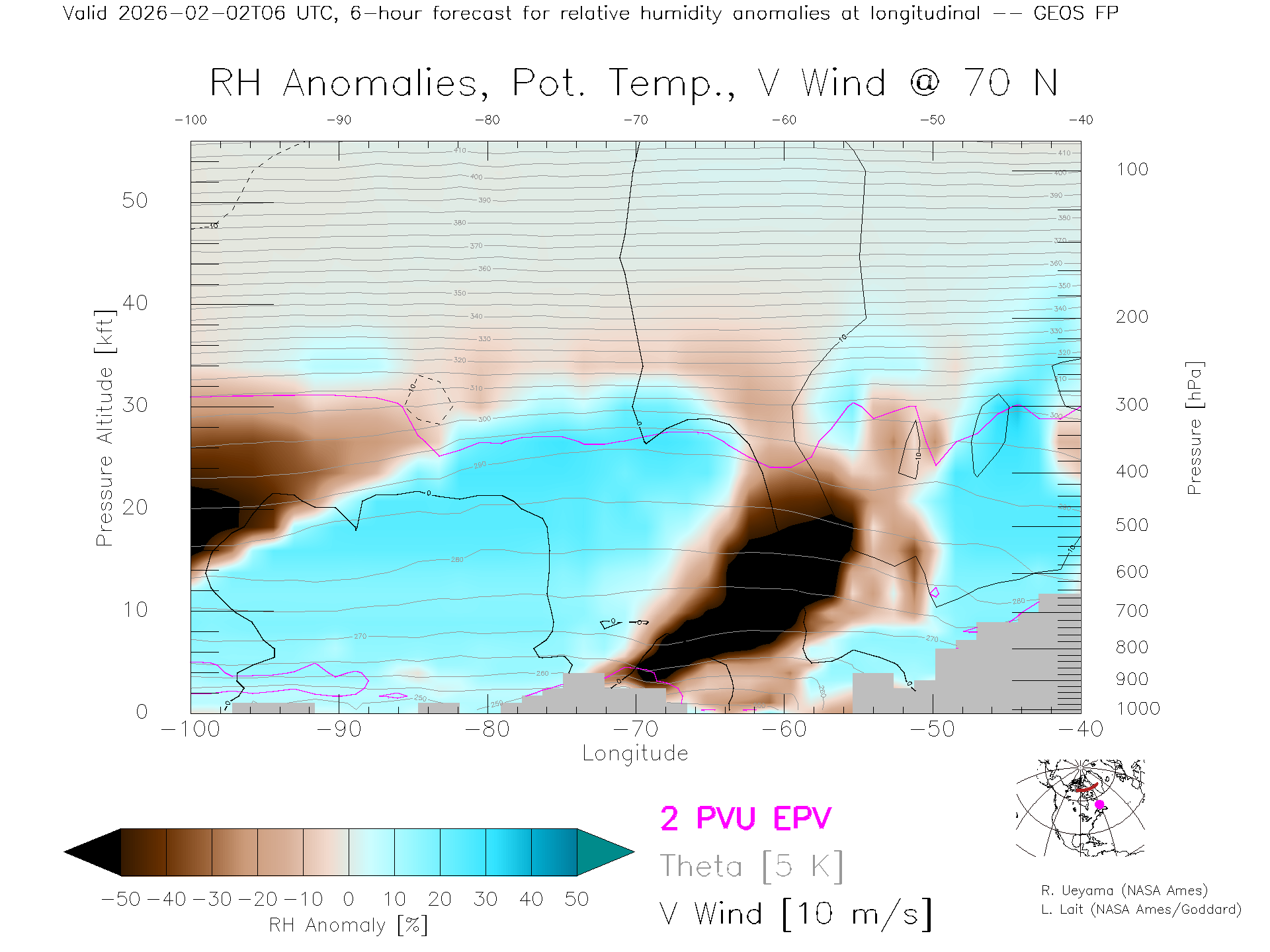 GEOS Forecast Rel. Hum. X-Section (70 N)