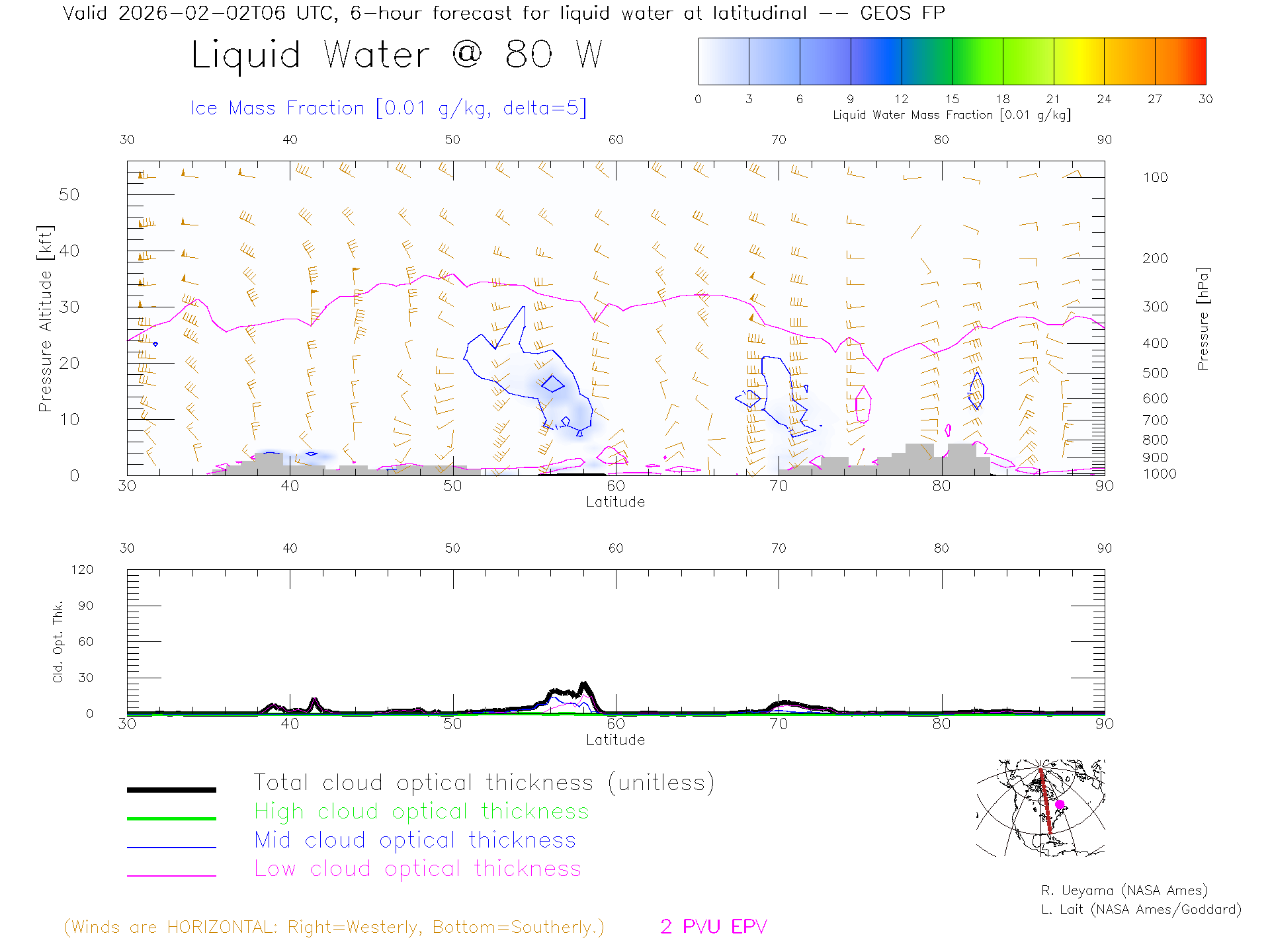 GEOS Forecast Cloud Water Content X-Section (80 W)