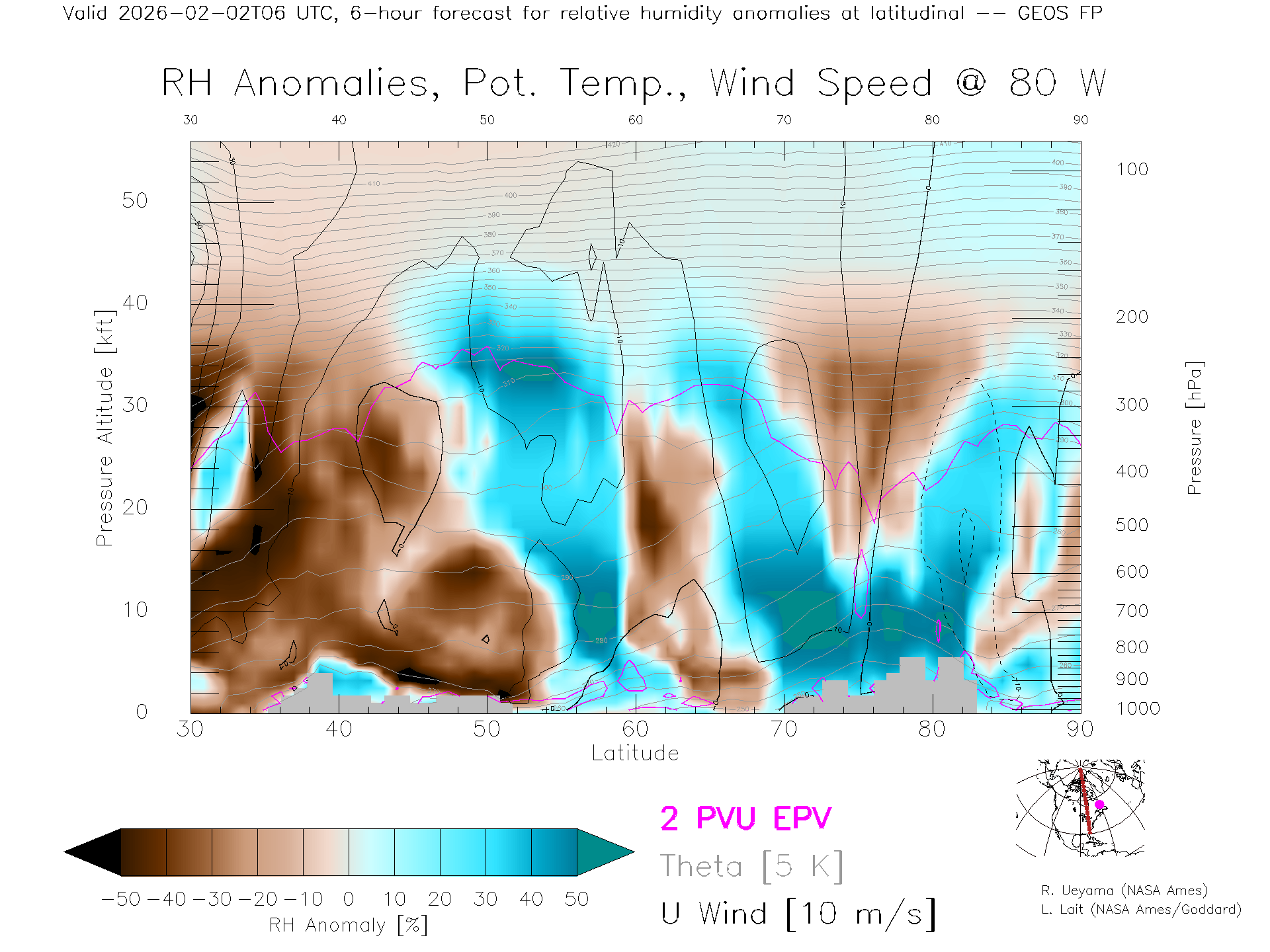 GEOS Forecast Rel. Hum. X-Section (80 W)