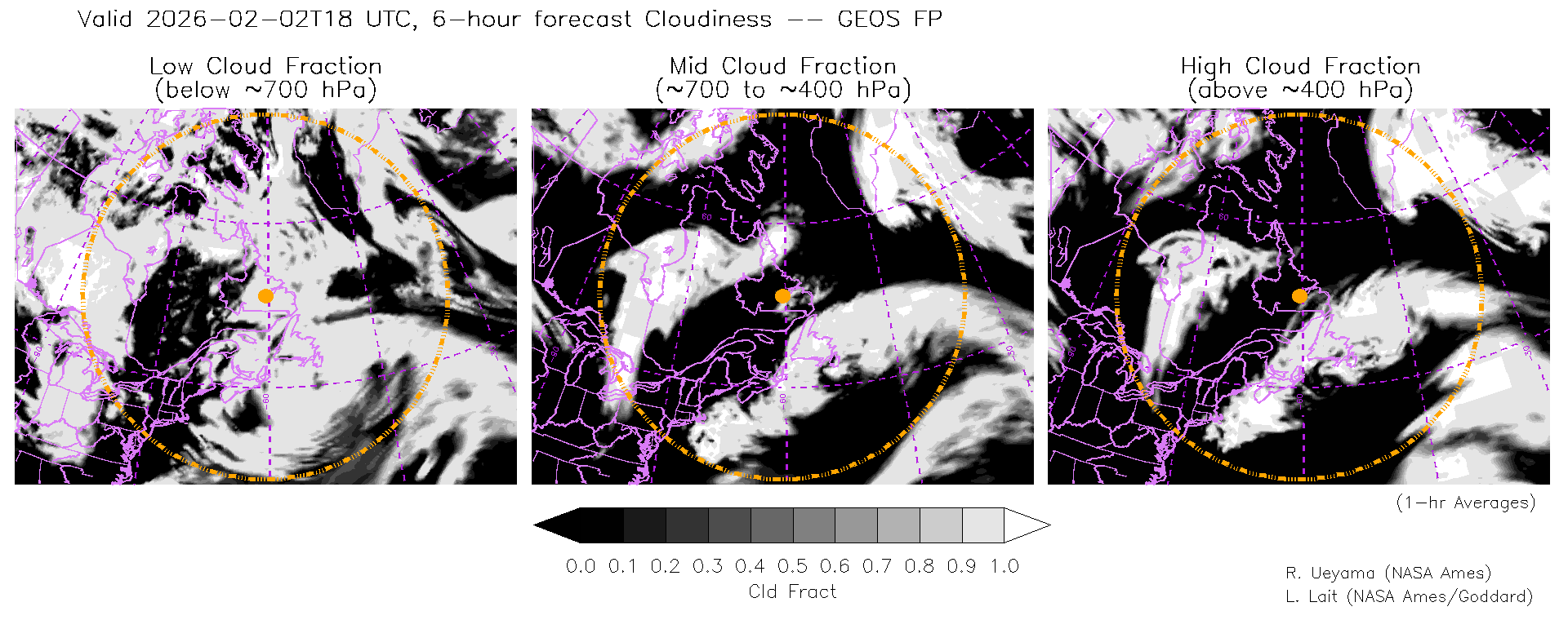 GEOS Forecast Cloud Fraction (High, Mid, Low)