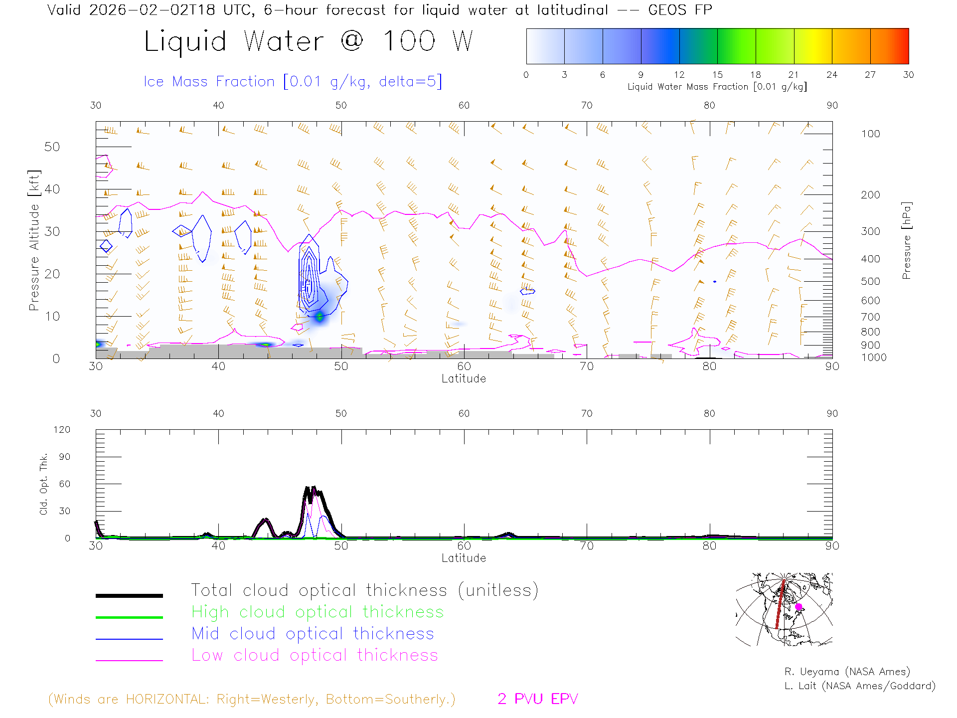 GEOS Forecast Cloud Water Content X-Section (100 W)