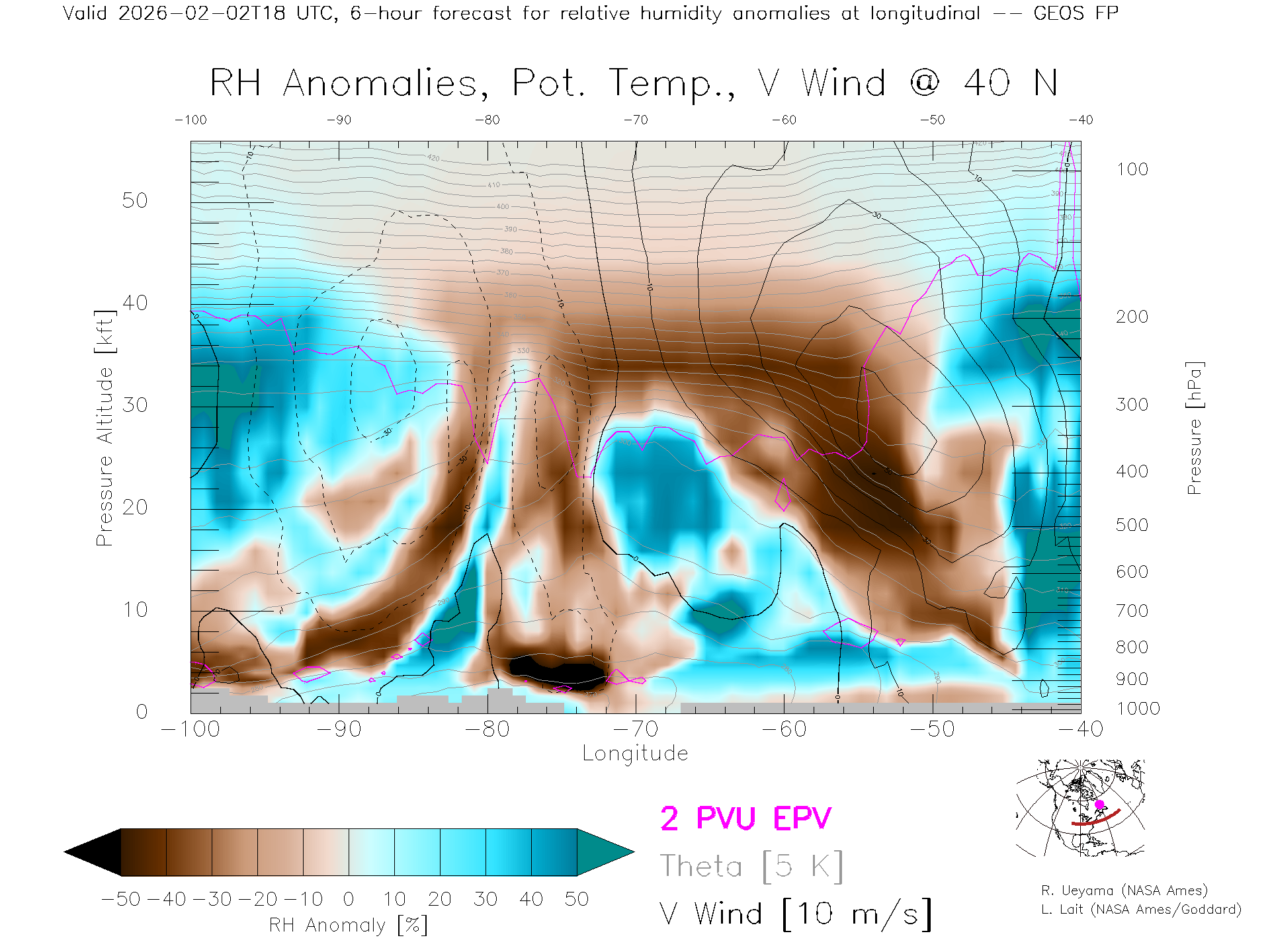 GEOS Forecast Rel. Hum. X-Section (40 N)