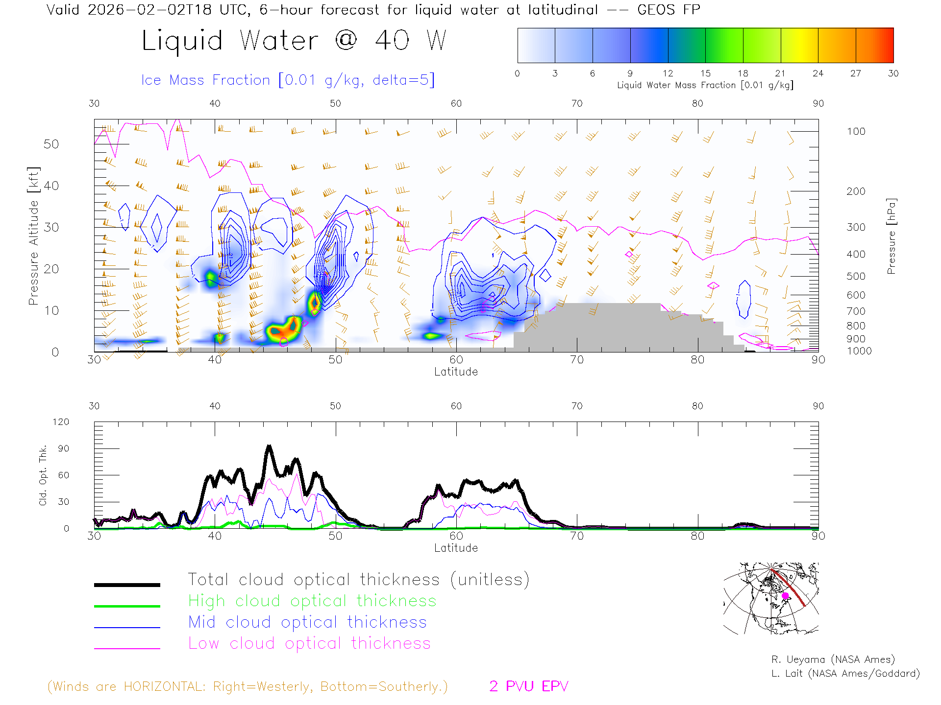 GEOS Forecast Cloud Water Content X-Section (40 W)