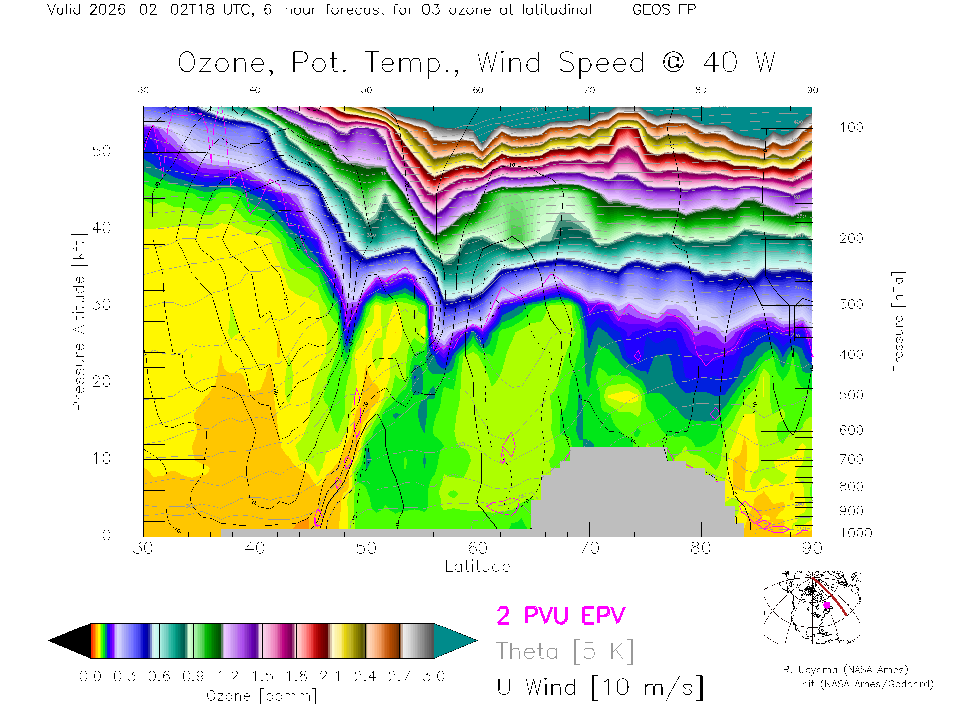 GEOS Forecast Ozone X-Section (40 W)