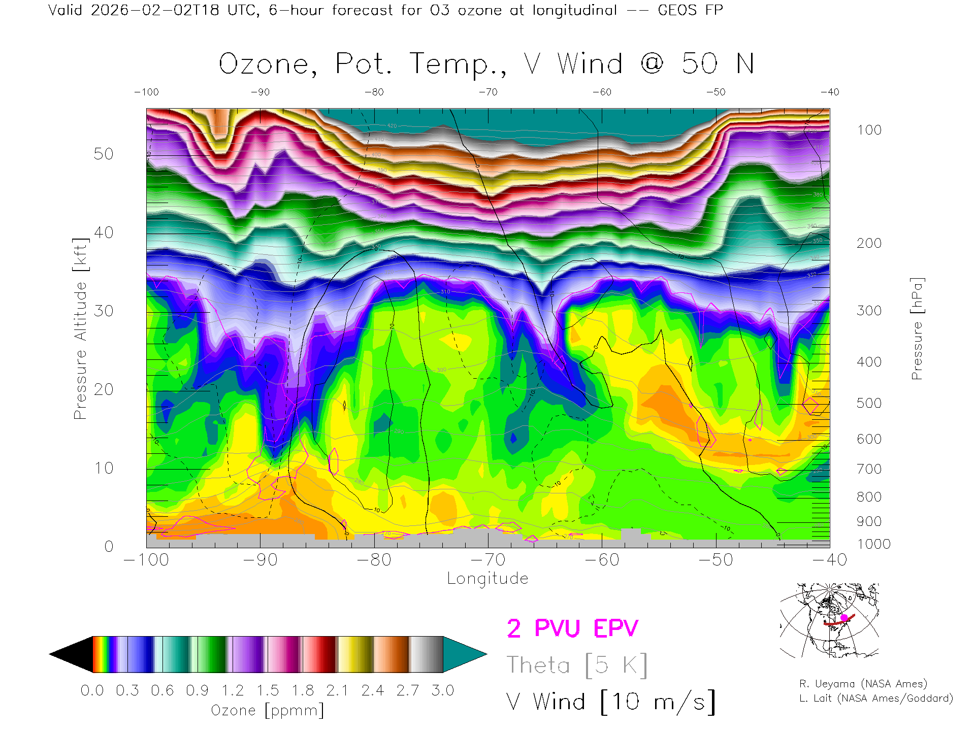 GEOS Forecast Ozone X-Section (50 N)