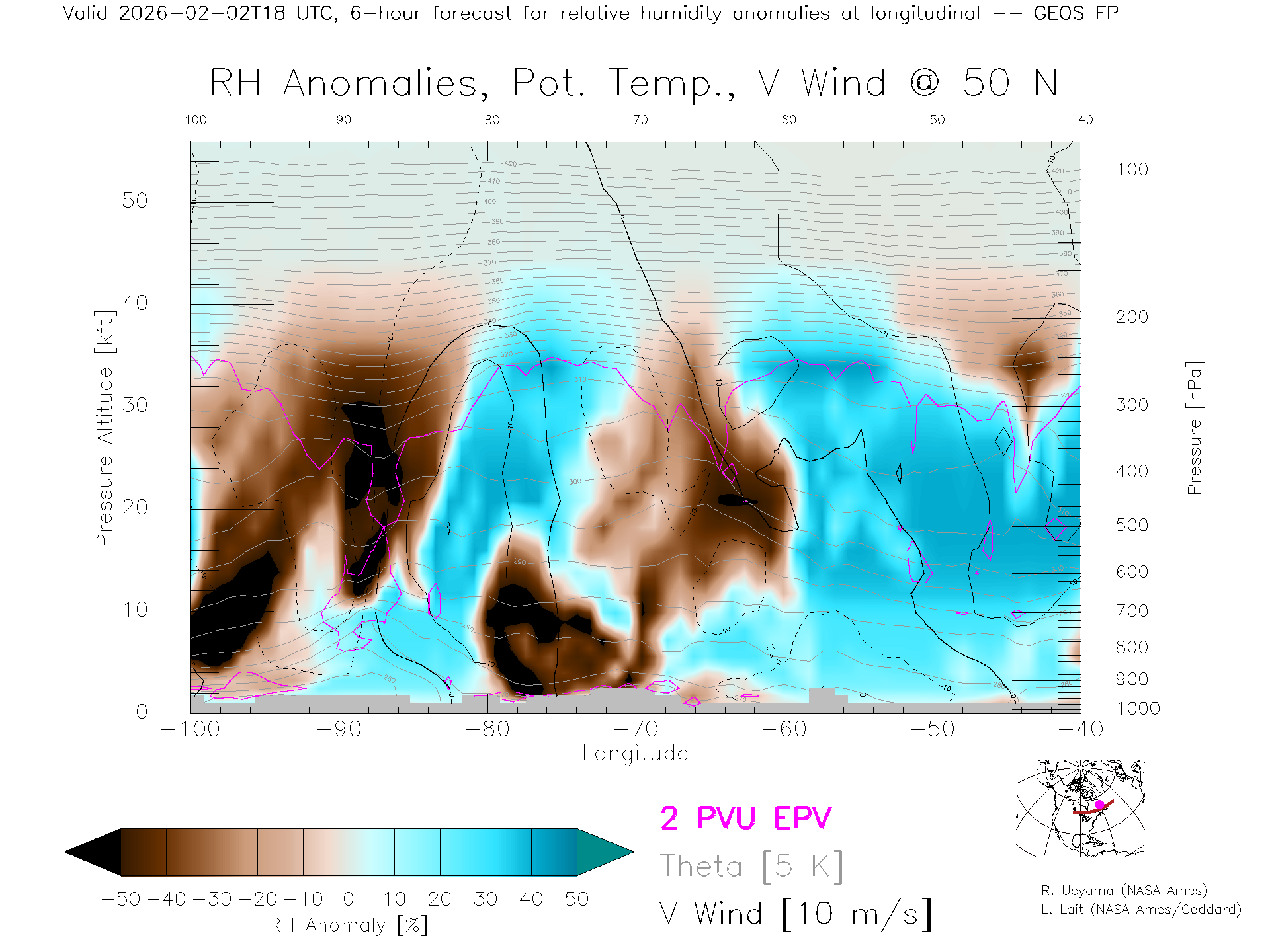 GEOS Forecast Rel. Hum. X-Section (50 N)