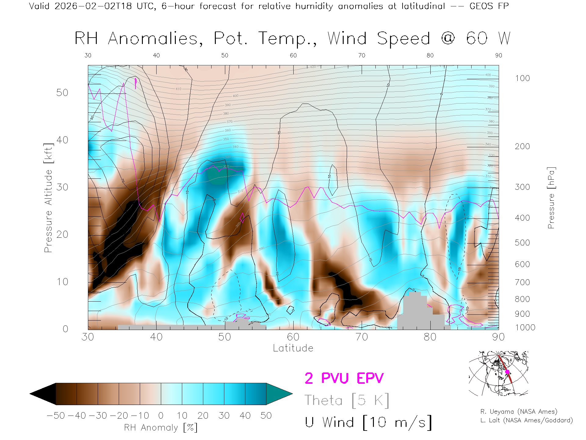 GEOS Forecast Rel. Hum. X-Section (60 W)