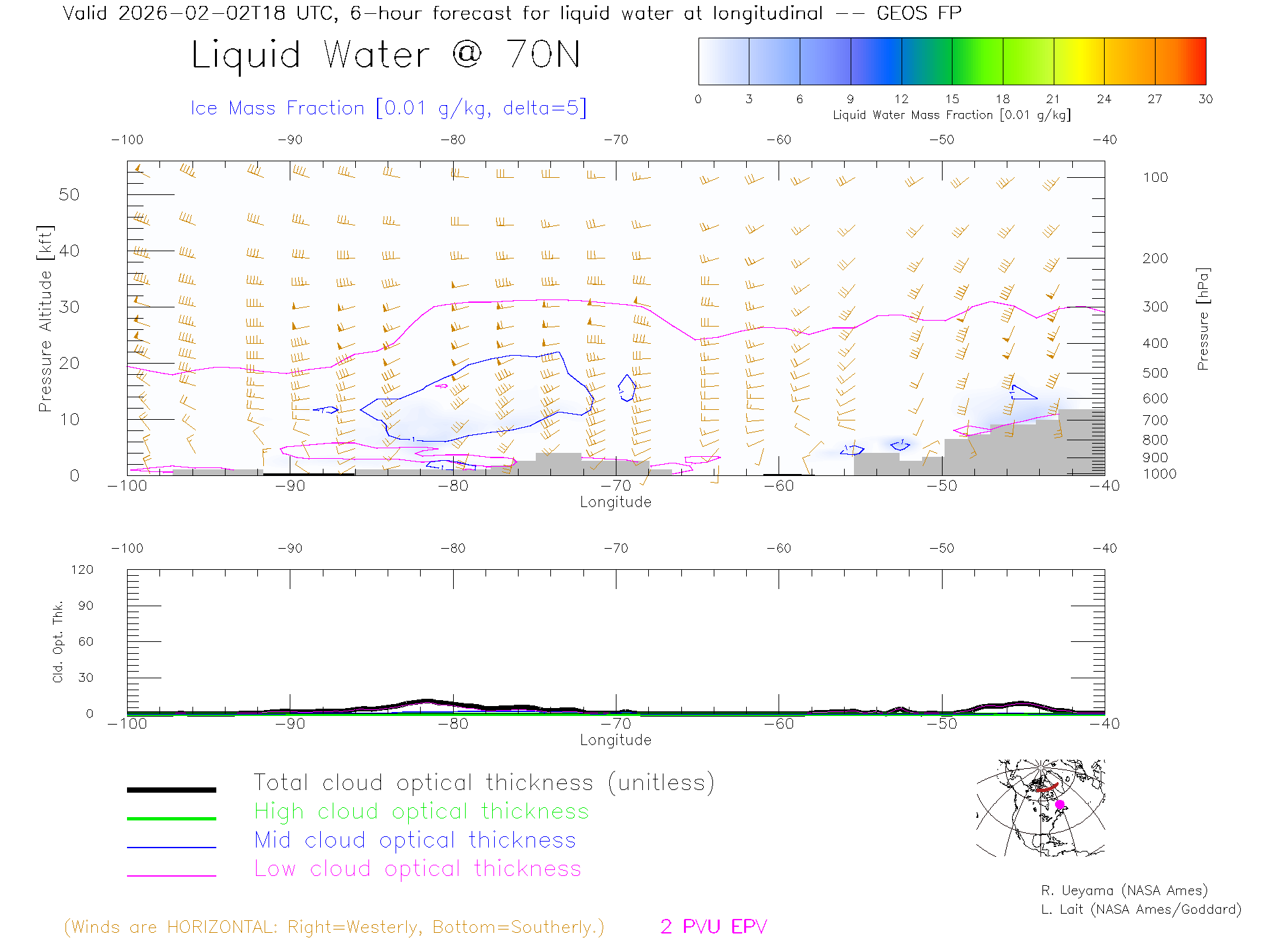GEOS Forecast Cloud Water Content X-Section (70 N)