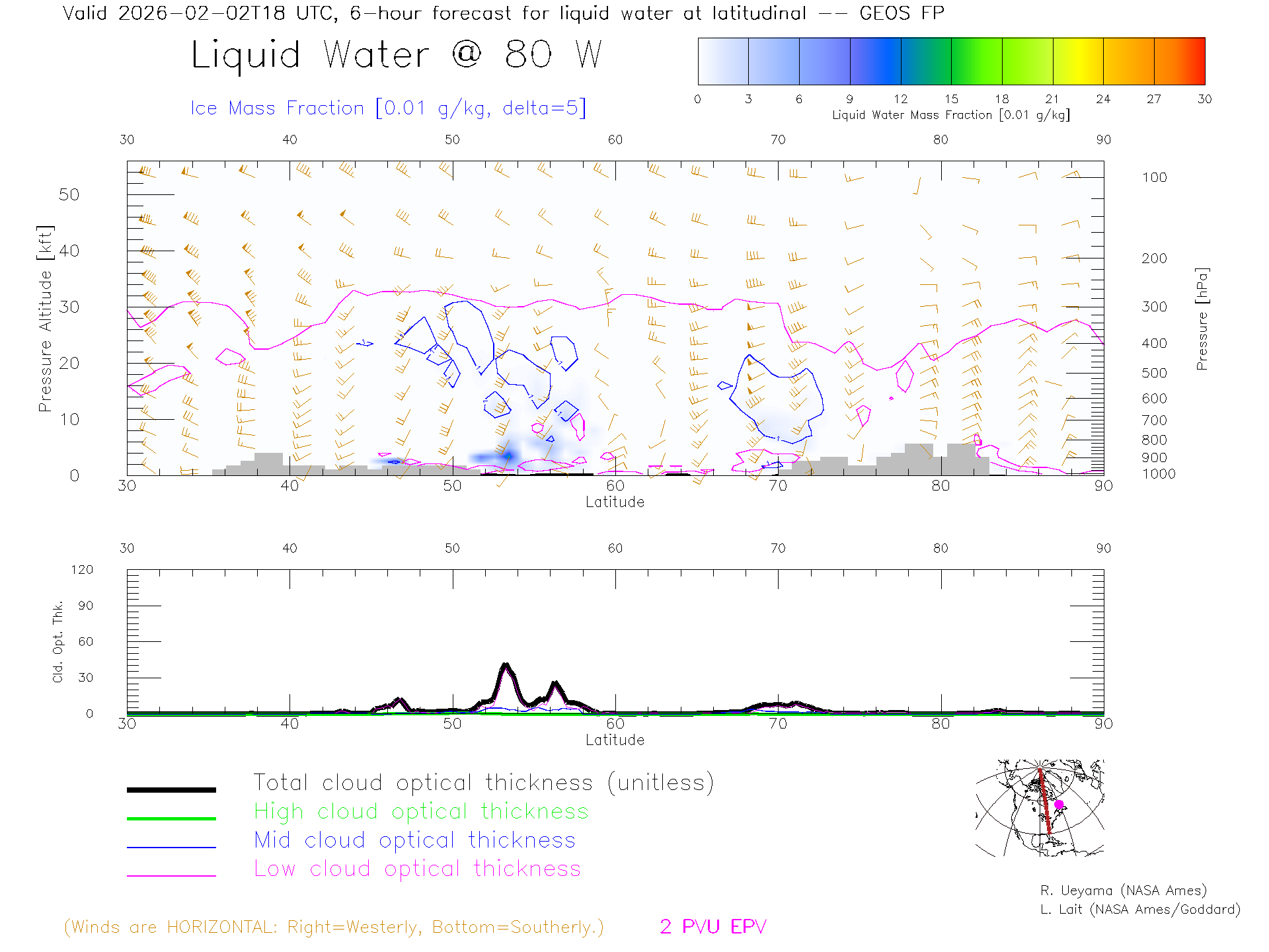 GEOS Forecast Cloud Water Content X-Section (80 W)
