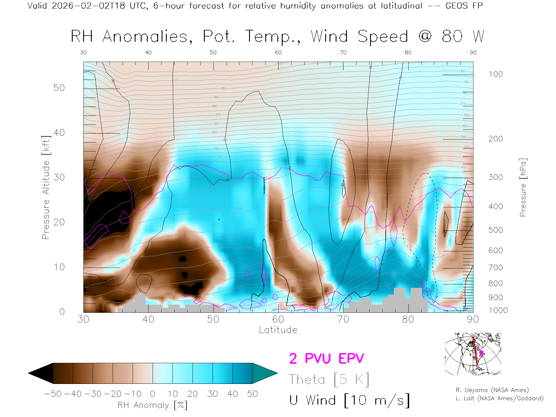GEOS Forecast Rel. Hum. X-Section (80 W)