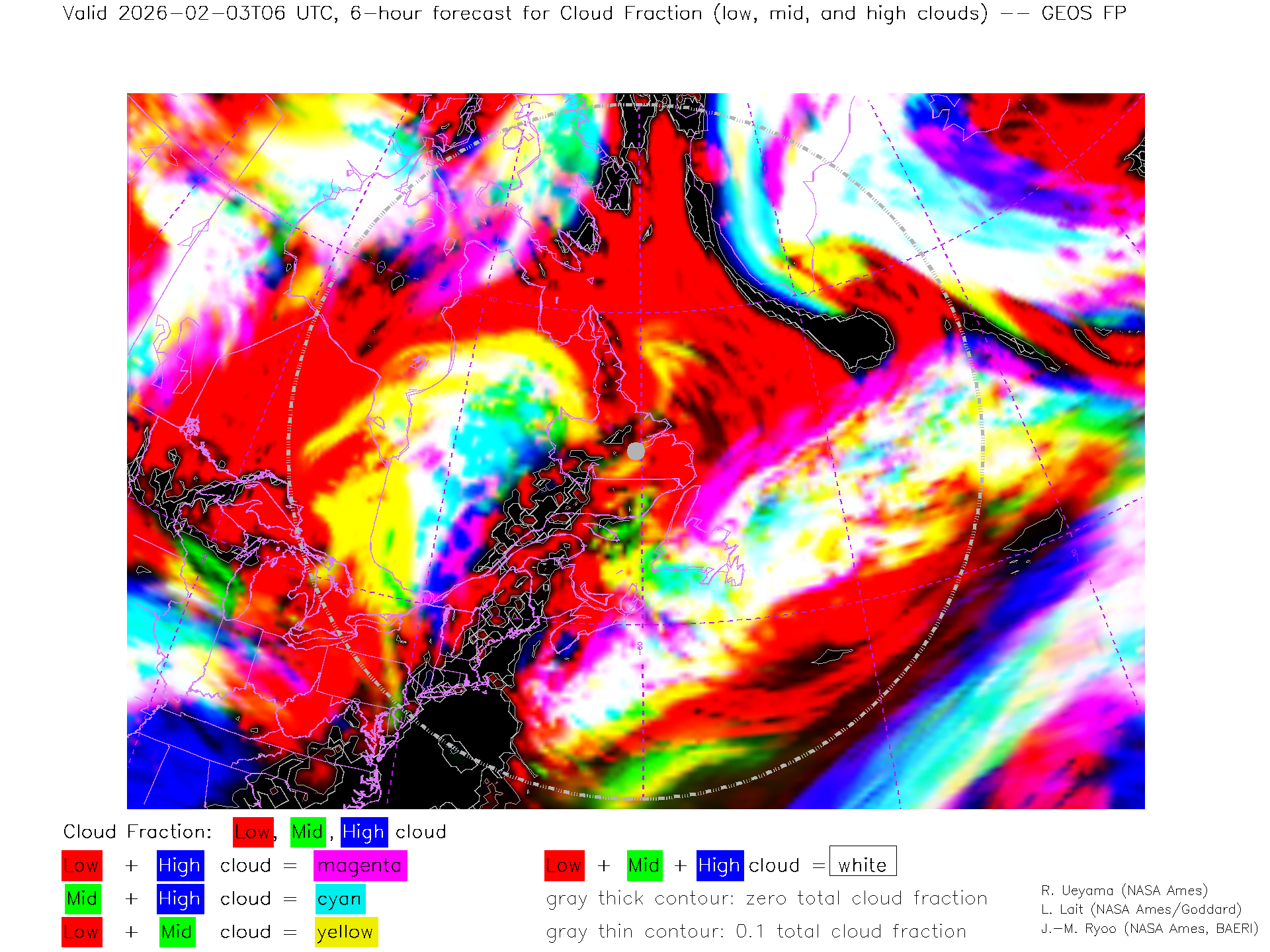 GEOS Forecast Low-, Mid- and High-level Cloud Fraction