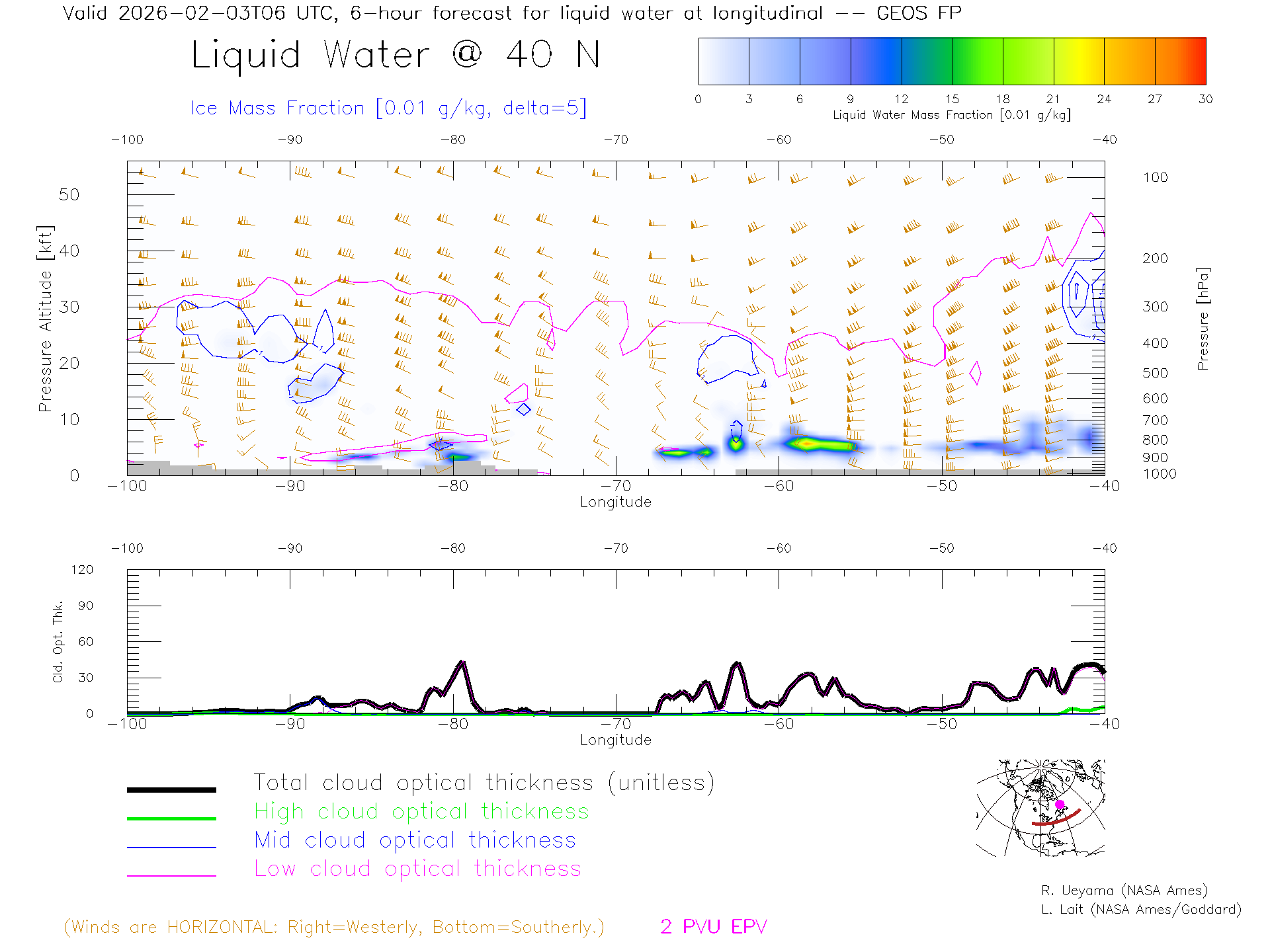 GEOS Forecast Cloud Water Content X-Section (40 N)