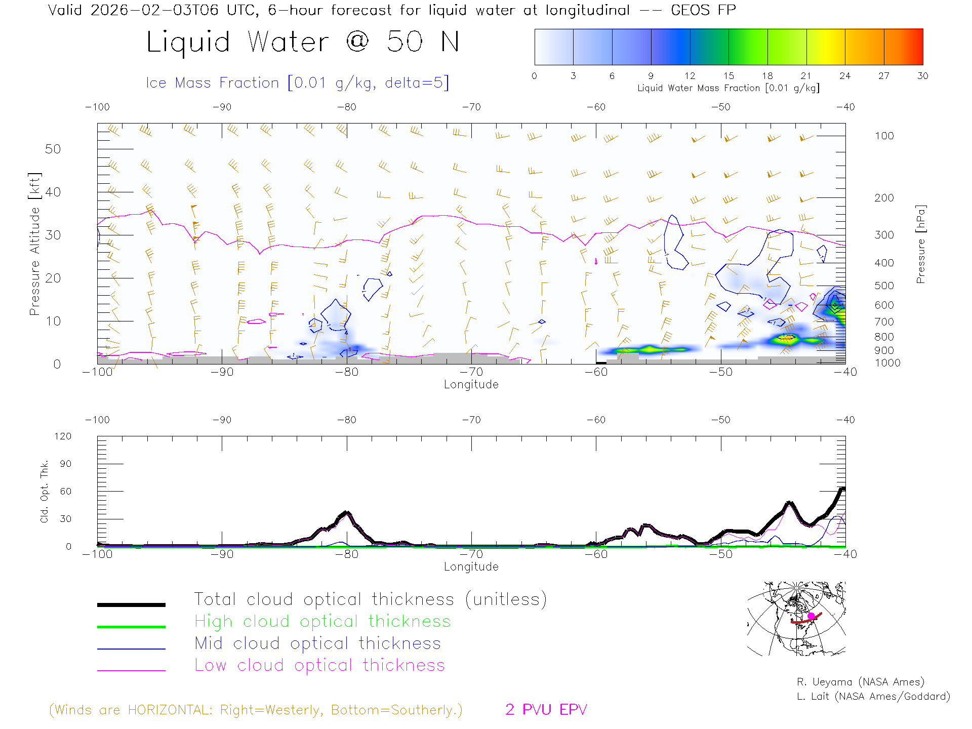 GEOS Forecast Cloud Water Content X-Section (50 N)