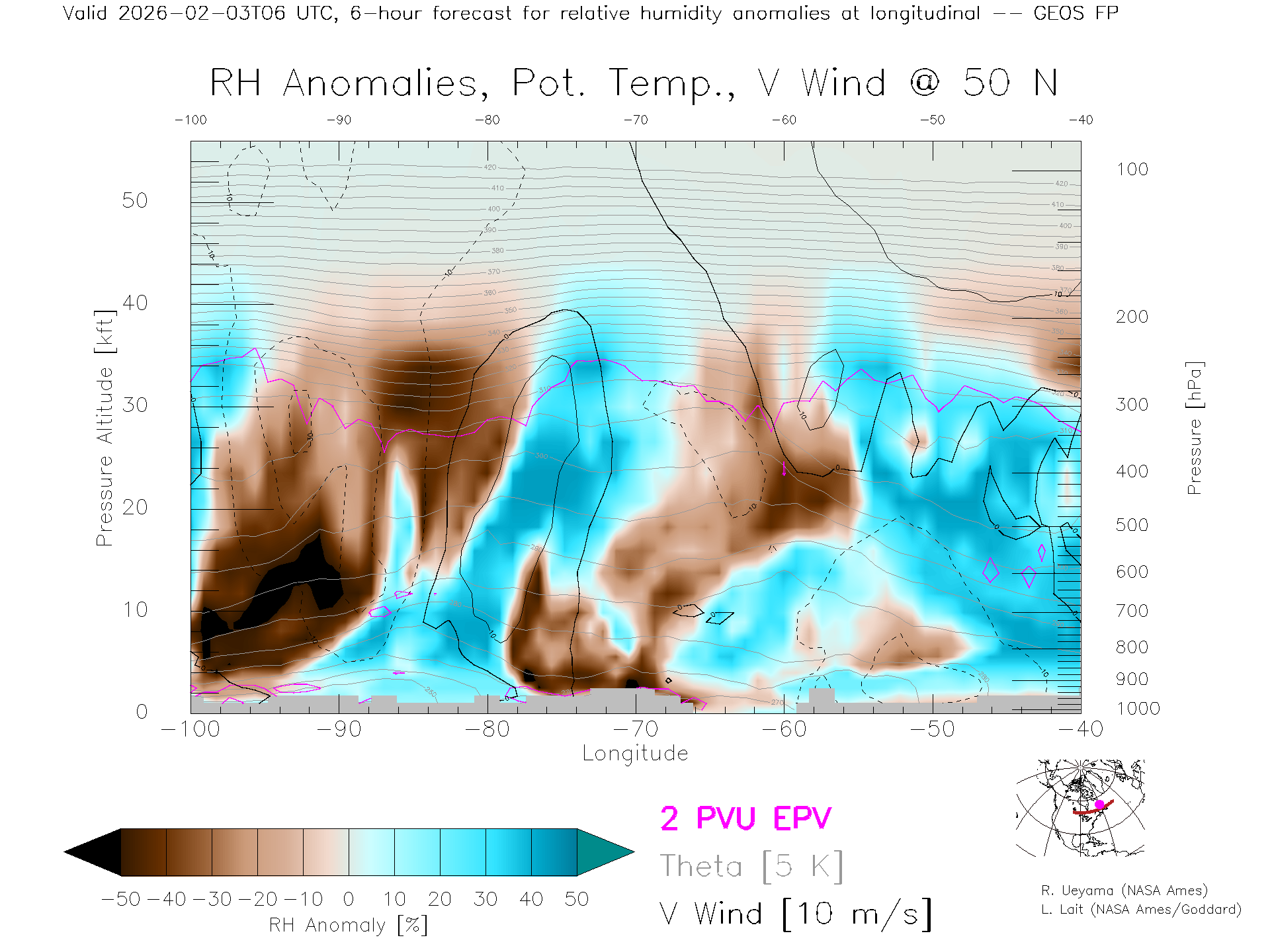GEOS Forecast Rel. Hum. X-Section (50 N)