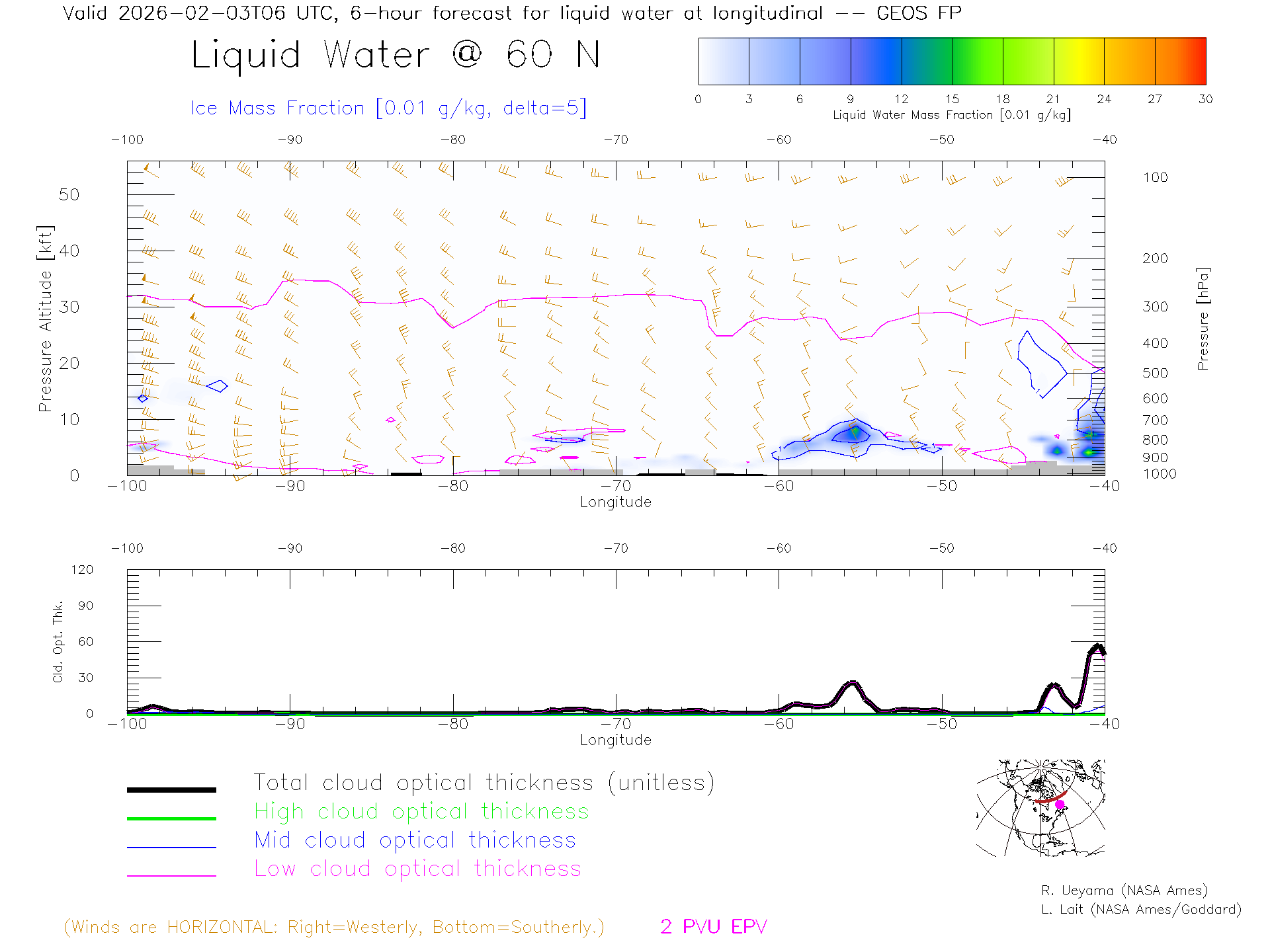 GEOS Forecast Cloud Water Content X-Section (60 N)