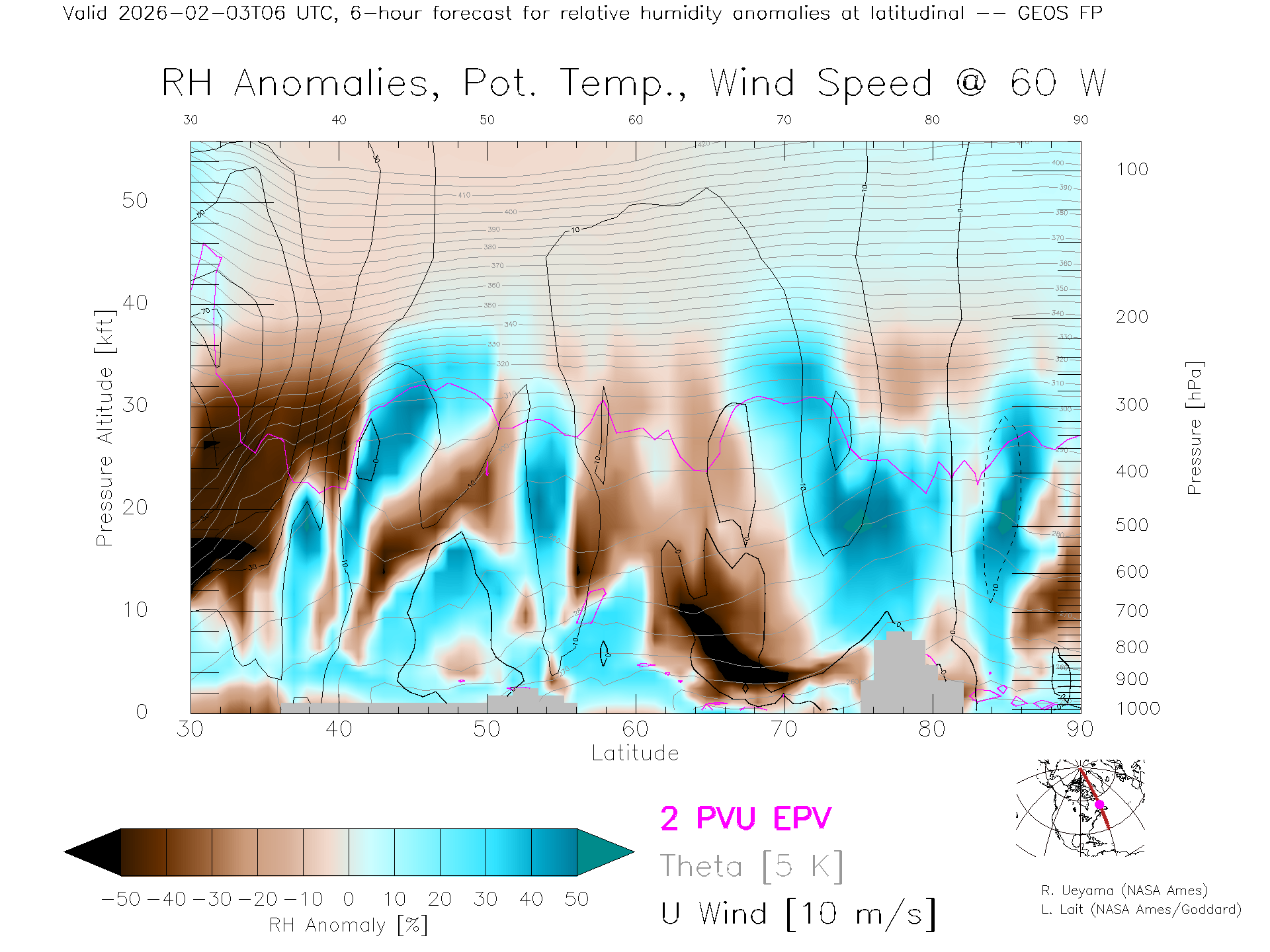 GEOS Forecast Rel. Hum. X-Section (60 W)