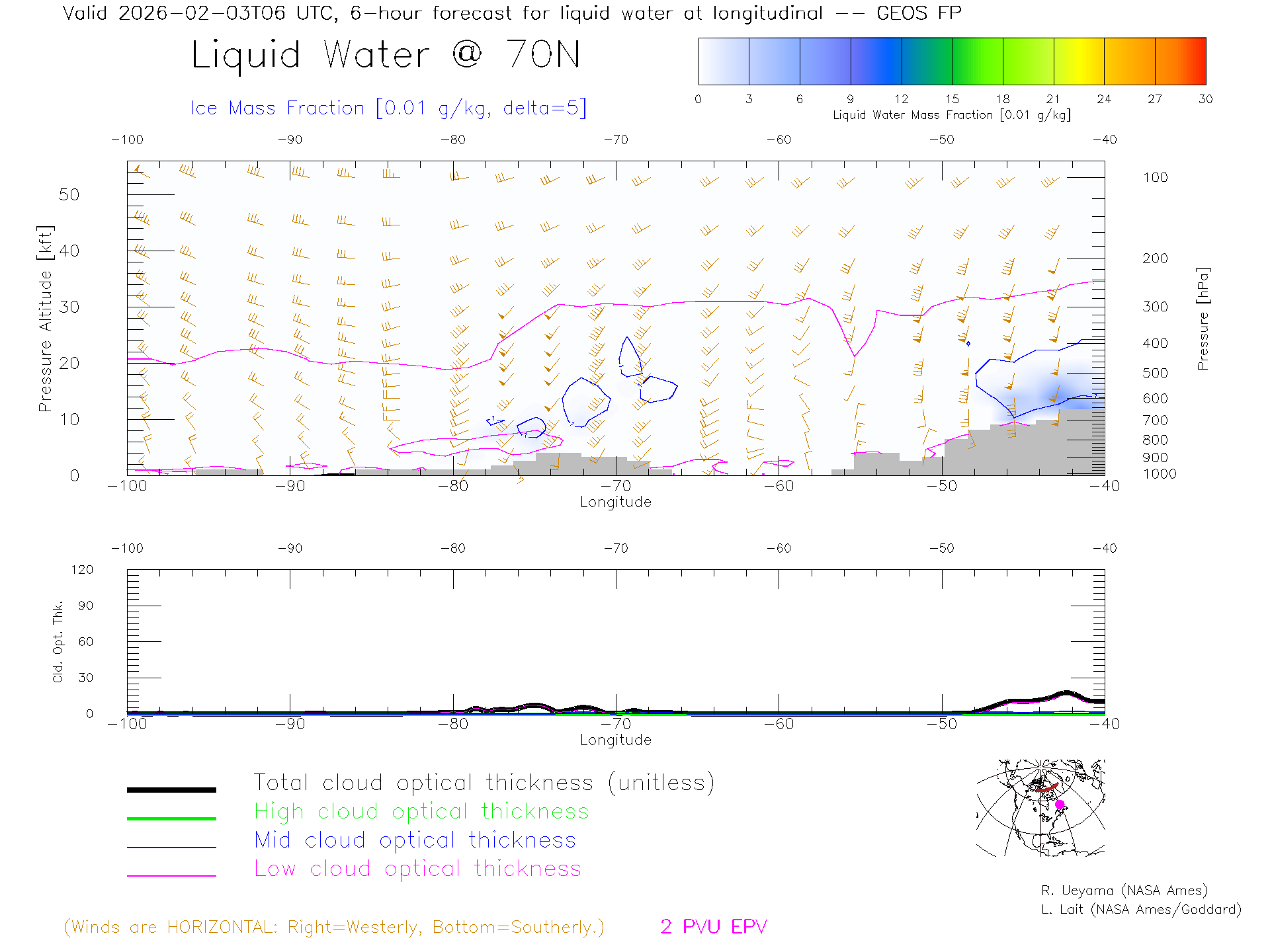 GEOS Forecast Cloud Water Content X-Section (70 N)