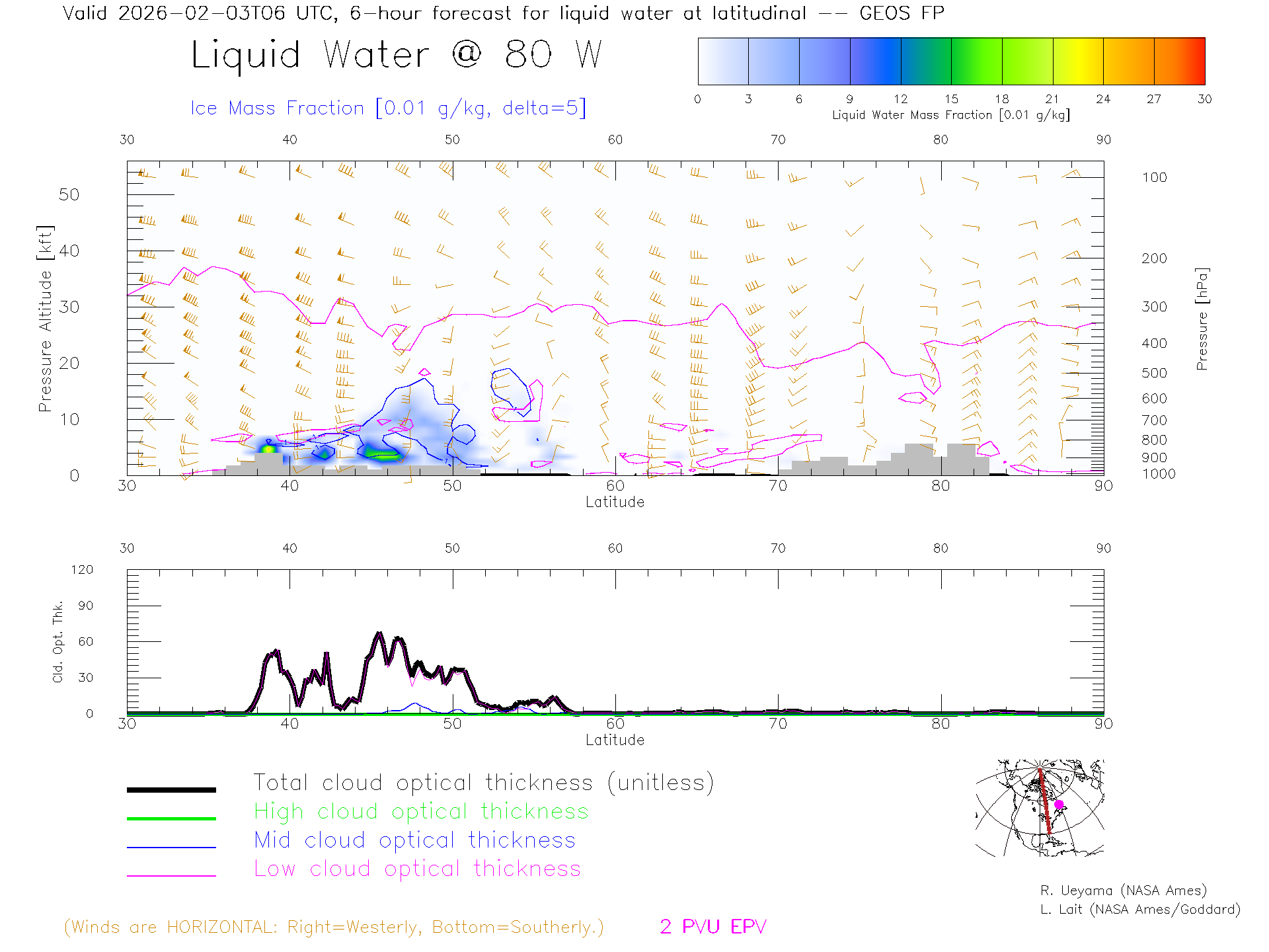 GEOS Forecast Cloud Water Content X-Section (80 W)