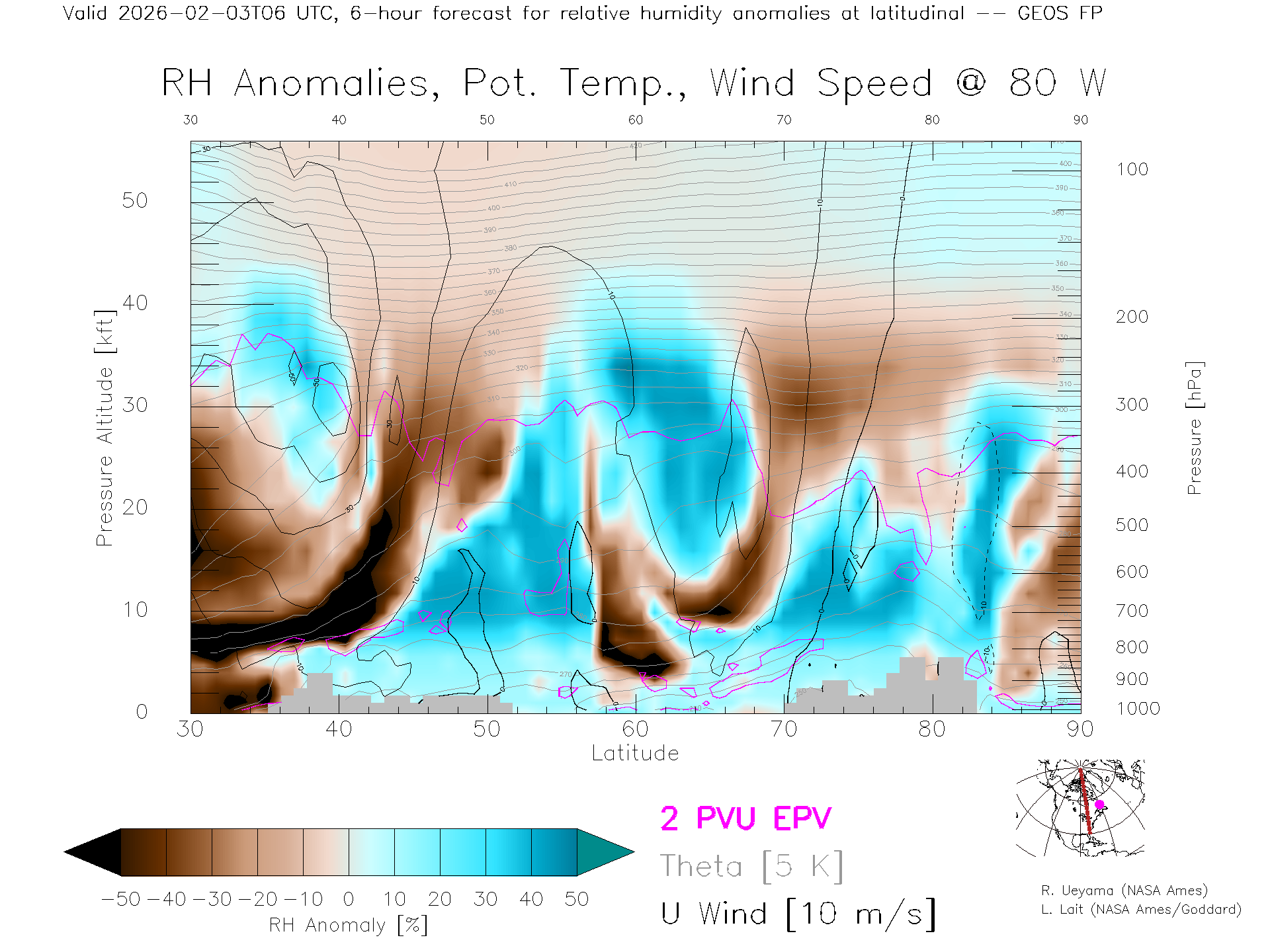 GEOS Forecast Rel. Hum. X-Section (80 W)