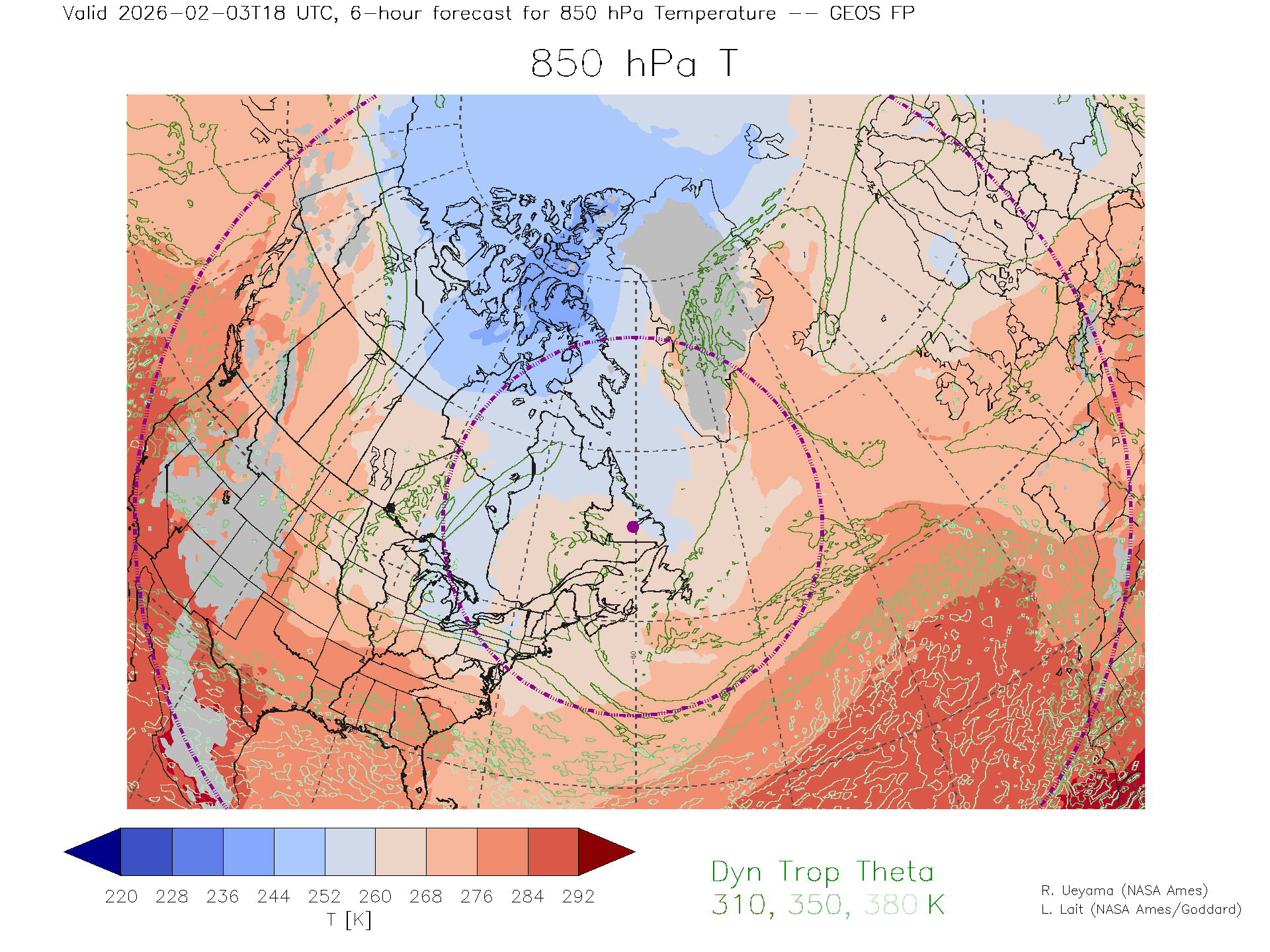 GEOS Forecast 850 hPa Temp.