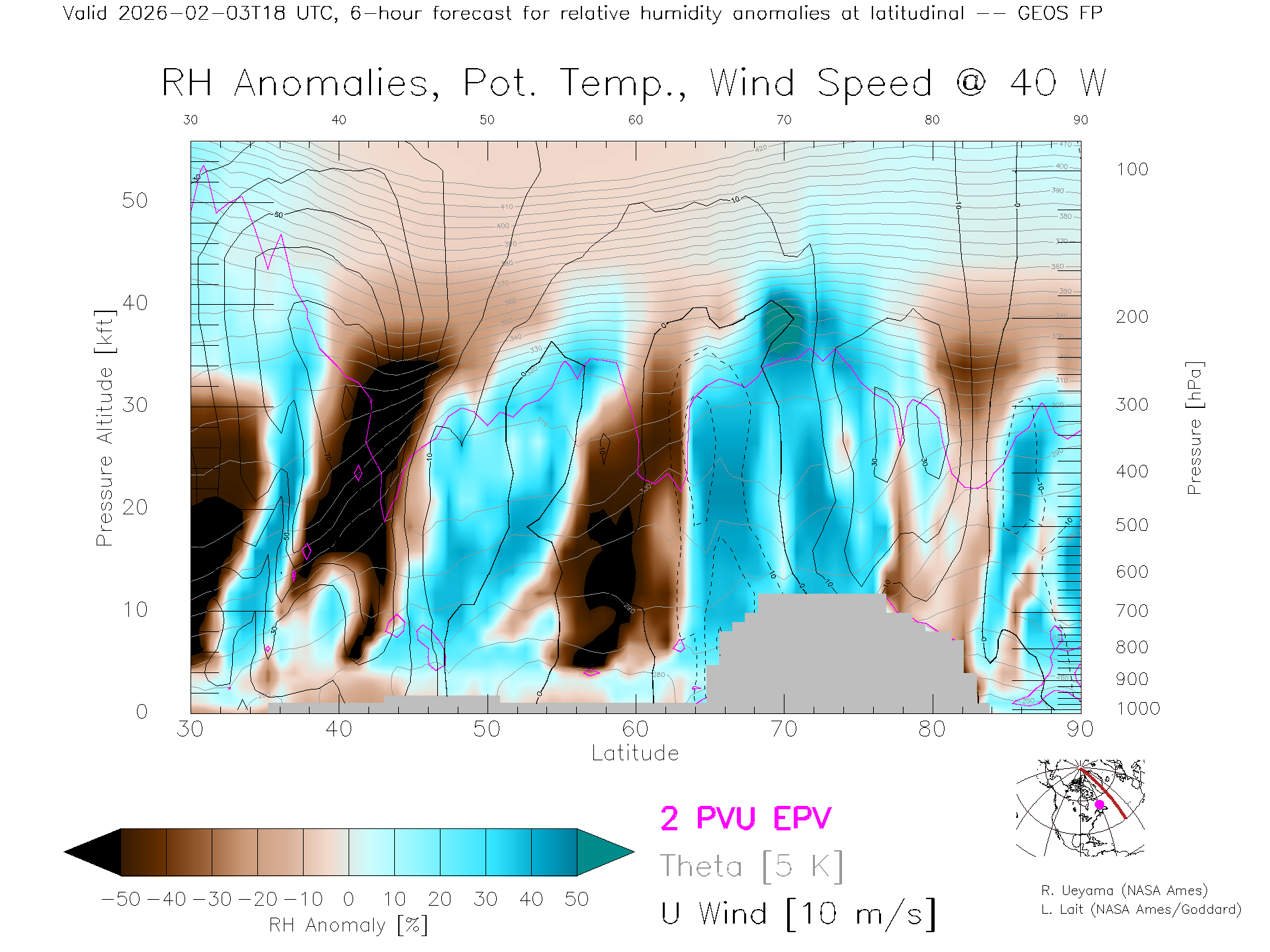 GEOS Forecast Rel. Hum. X-Section (40 W)