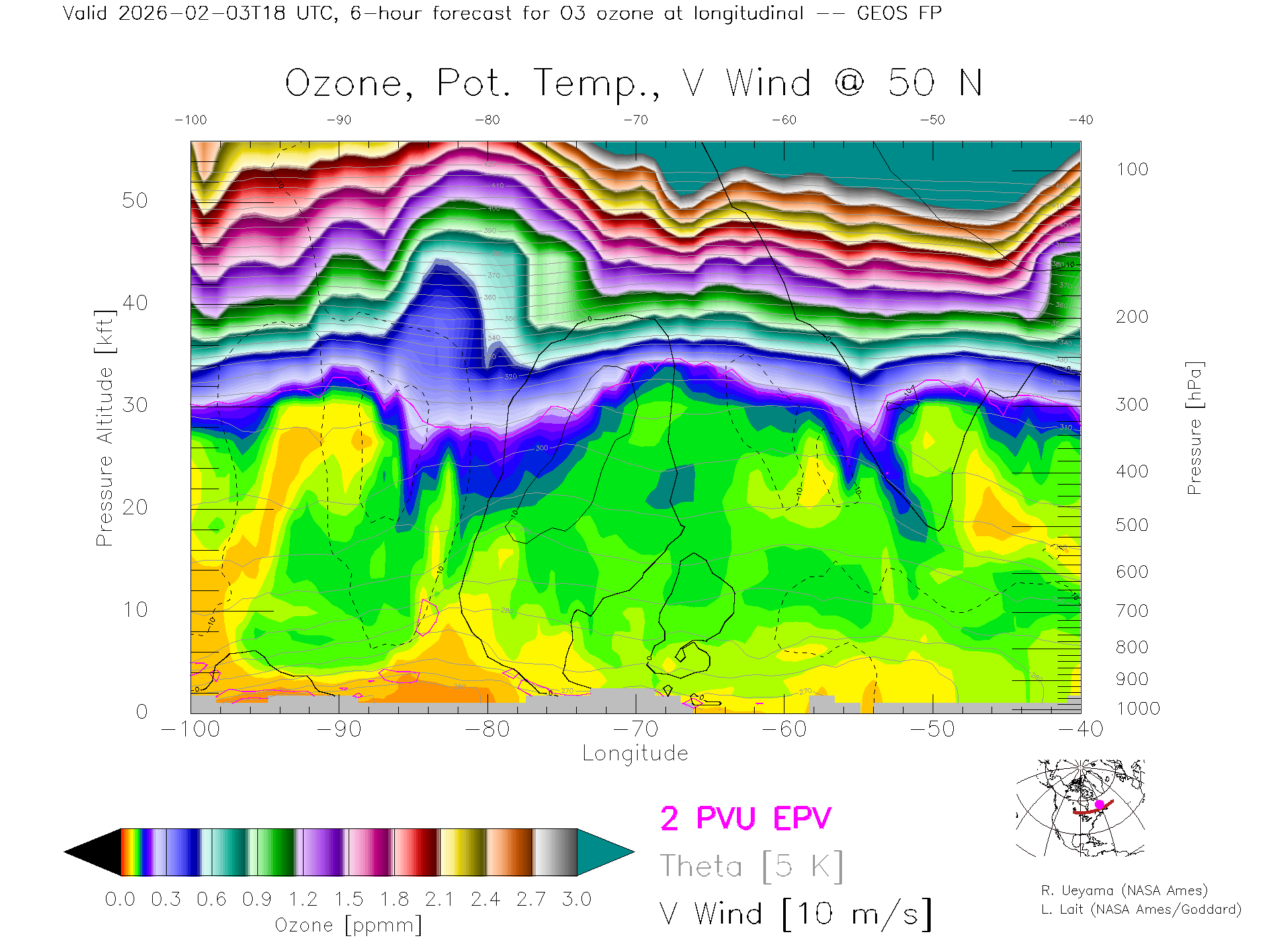 GEOS Forecast Ozone X-Section (50 N)