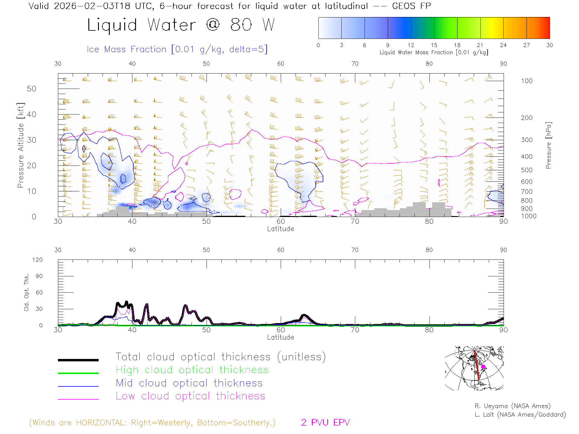 GEOS Forecast Cloud Water Content X-Section (80 W)